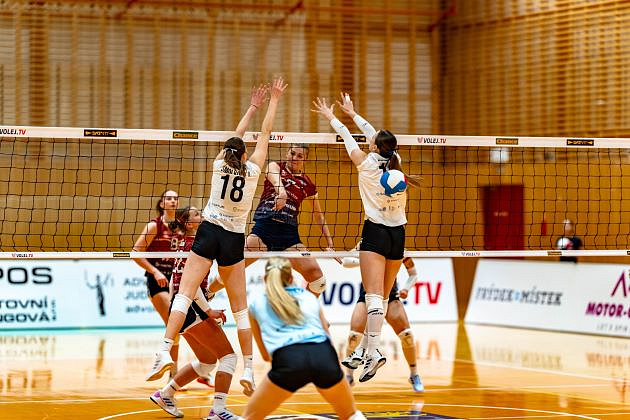 Domácí: Martinelli, Dreisigová, Beranová, Hrušová, Popić, Valentová, libera Magdinová, Nováková. Střídaly: Raabová, Sedláčková, Chalupová