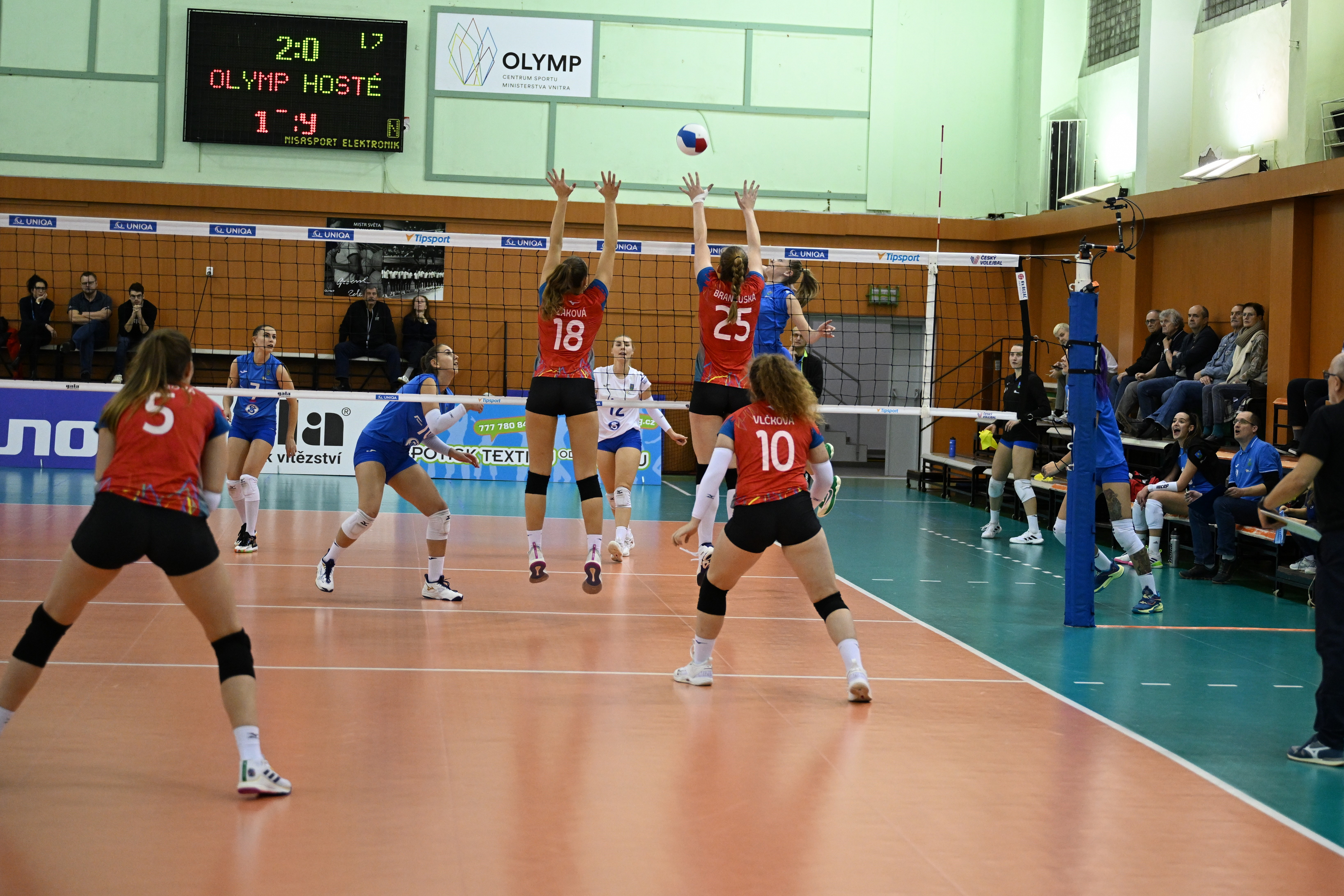 Domácí: Hodanová, Žáková, Brancuská, Kalhousová, Šimáňová, Šmídová, libero Dostálová. Střídala: Vlčková