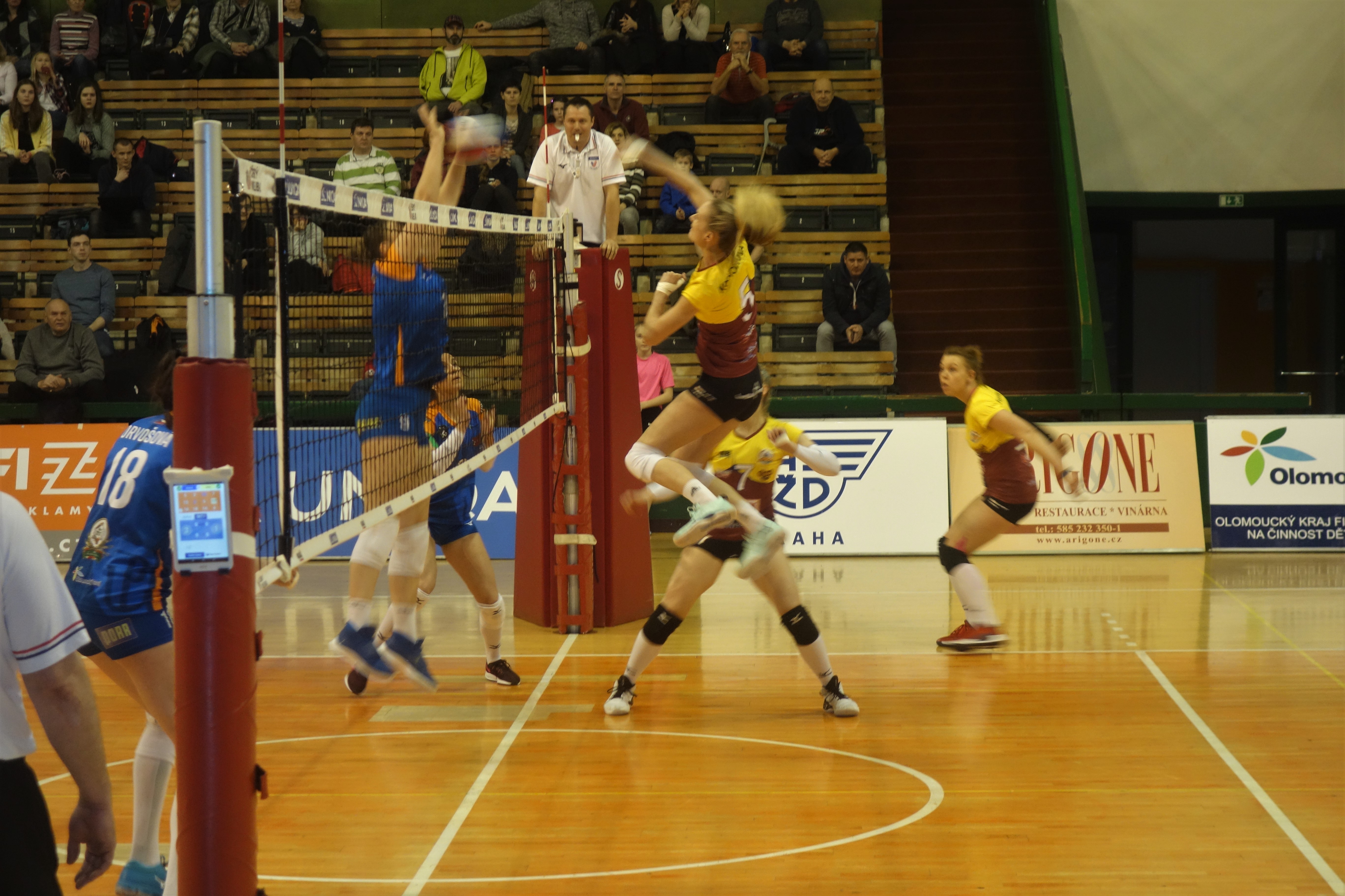 Domácí: Hodanová, Strušková, Orvošová, Michalíková, Trnková, Handley, libero Stavinohová. Střídala: Burbelyuk