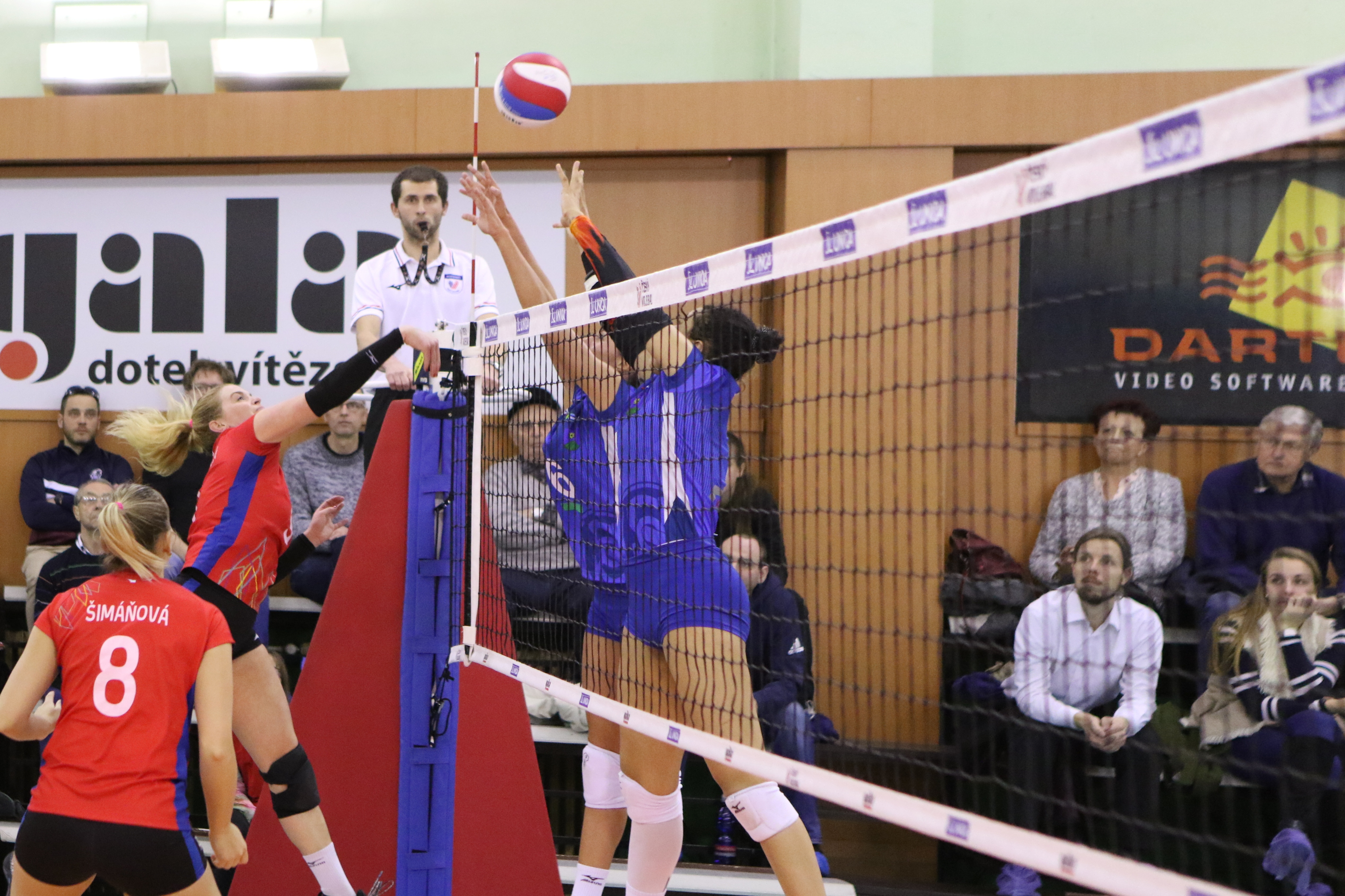 Hosté: Bartošová, Bajusz, Svobodová, Kohoutová, Tolentino, Šotkovská, libera Kolářová, Dostálová. Střídaly: Wopereis, Šulcová