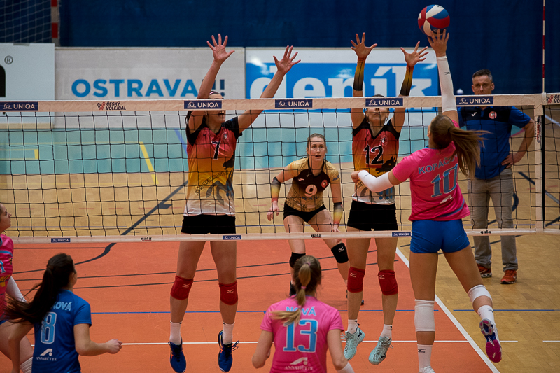 Domácí: Kojdová, Kalusková, Wanczyk, Žarnovická, Nečasová, Pospíšilová, libero Chevalierová. Střídaly: Zemanová, Žolnerčíková, Kašparová, Faltínová