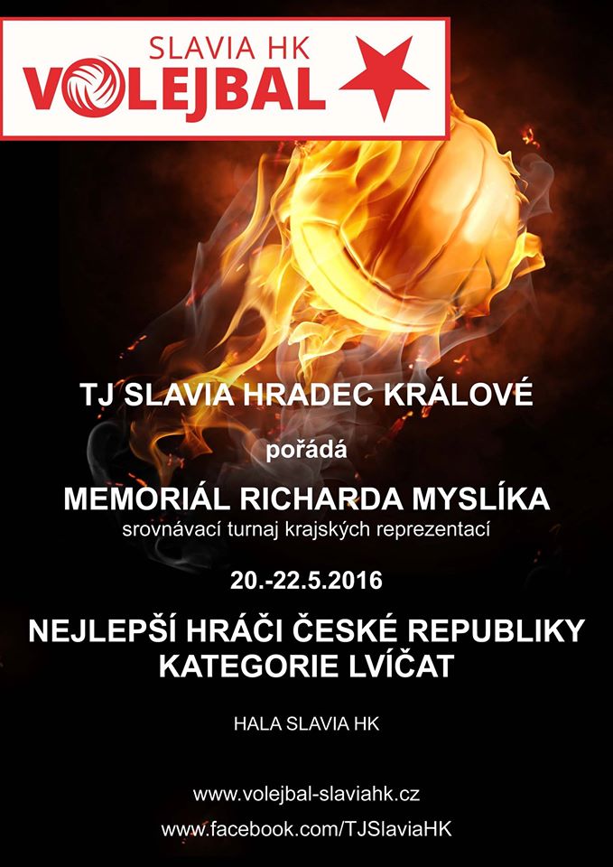 TJ Slavia Hradec Králové pořádá od tohoto pátku do neděle 22. května 2016 Memoriál Richarda Myslíka. Srovnávací turnaj krajských reprezentací přivítá místní hala Slavie HK. K vidění budou nejlepší hráči České republiky kategorie lvíčat. Více informací naleznete na facebooku ZDE nebo na webových stánkách ZDE.