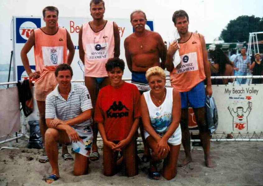 Poslední snímek je z roku 1992 a ještě z Turecka. Sešla se na něm část rodiny Myslíkových s dalšími českými volejbalisty v rámci beachvolejbalového turnaje. Zleva stojí Milan Džavoronok, Pavel Barborka, Ríša Myslík a Tomáš Kopsa, dole zleva Miloš Kohout (další z českých trenérů v Turecku), dcera Karolina a manželka Jana. Na volejbalové výchově „Džávy“ a „Barbuse“ se Richard podílel v době jejich působení ve Slavii PF Plzeň.