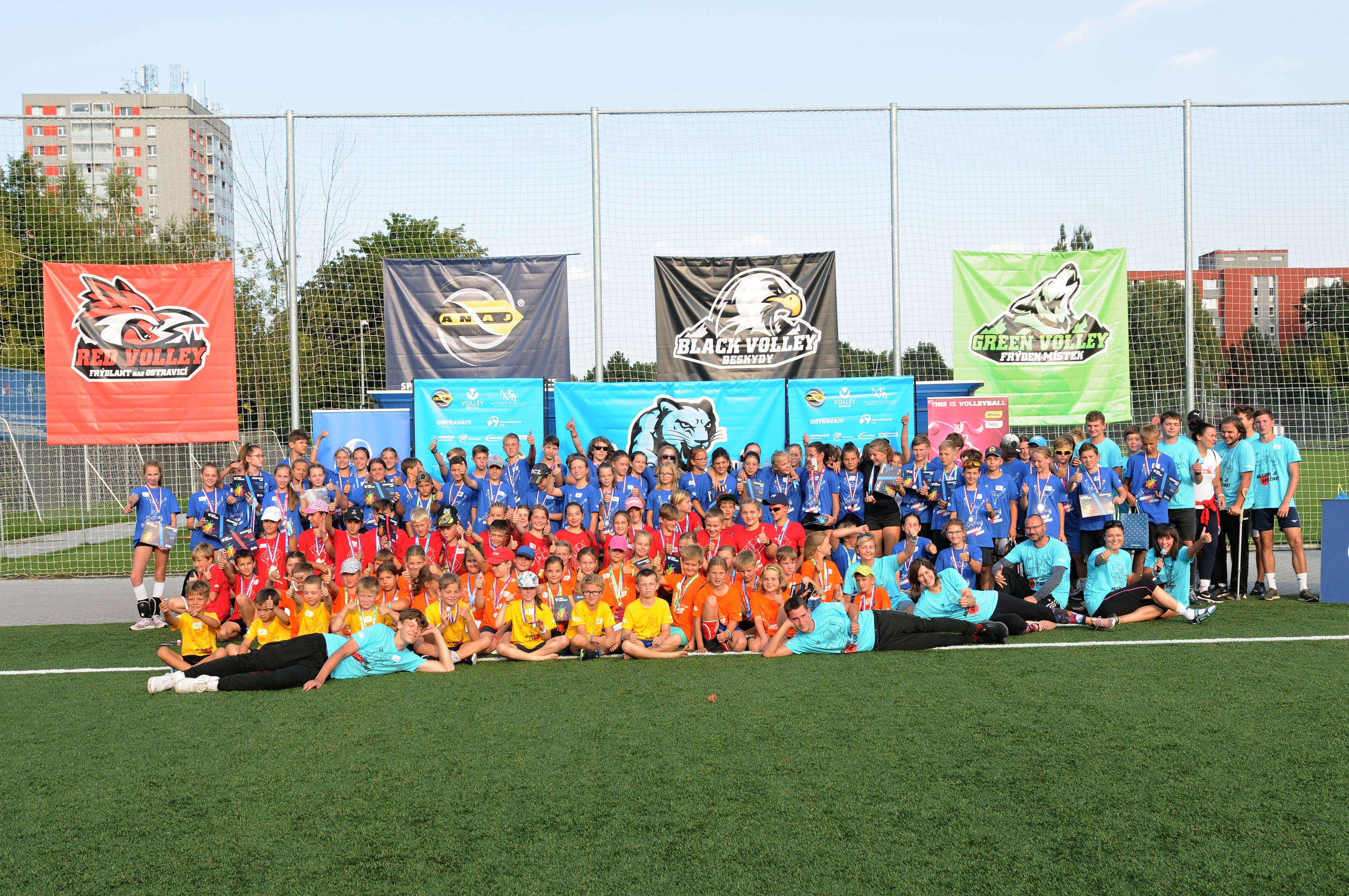 Krásně prosluněný sobotní den dopřál všem malým hráčům a hráčkám ve věku od 6-12 let zahrát si se svými kamarády po téměř dvou letech minivolejbal - projekt Českého volejbalového svazu, který podle zjednodušených pravidel umožňuje dětem na 1. stupni základní školy zvládnout začátky technicky náročného sportu, jakým volejbal je. Všechny kategorie našly zaslouženého vítěze a po skončení turnaje děti se svým doprovodem zavítaly na zápas ME ve volejbale mužů mezi Českem a Běloruskem, kde s nadšením podpořily své vzory.
