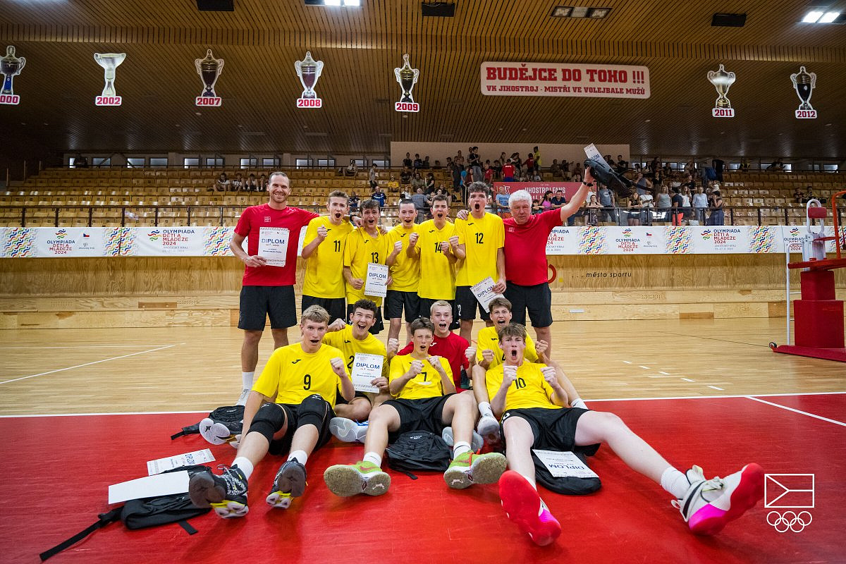 V kategorii chlapců se v semifinále potkala zatím dominující Vysočina se zápas od zápasu zlepšující se Prahou. Hochy z Vysočiny v tomto zápase zklamal hlavně příjem a při kvalitě servisu chlapců z hlavního města bylo ve dvou setech rozhodnuto prvním finalistovi. Druhé semifinále pro sebe před množstvím svým fanoušků „urvali“ domácí hráči, kteří stejně jako Praha nedovolili soupeři z Ústeckého kraje ani set. Zápas o třetí místo byl nakonec nejdramatičtější a v tiebreaku ho ve svůj prospěch zlomili hráči ze severu Čech, a to hlavně razantnějším útokem. Ve finále se očekávala velká bitva, ale domácí hráči Jihočeského kraje asi neunesli tlak, který byl na ně jako na favority celého turnaje vytvořen, a hráči z Prahy po klidném, a hlavně po výkonu bez nevynucených chyb, si bez problémů dokráčeli pro zasloužené zlato.
