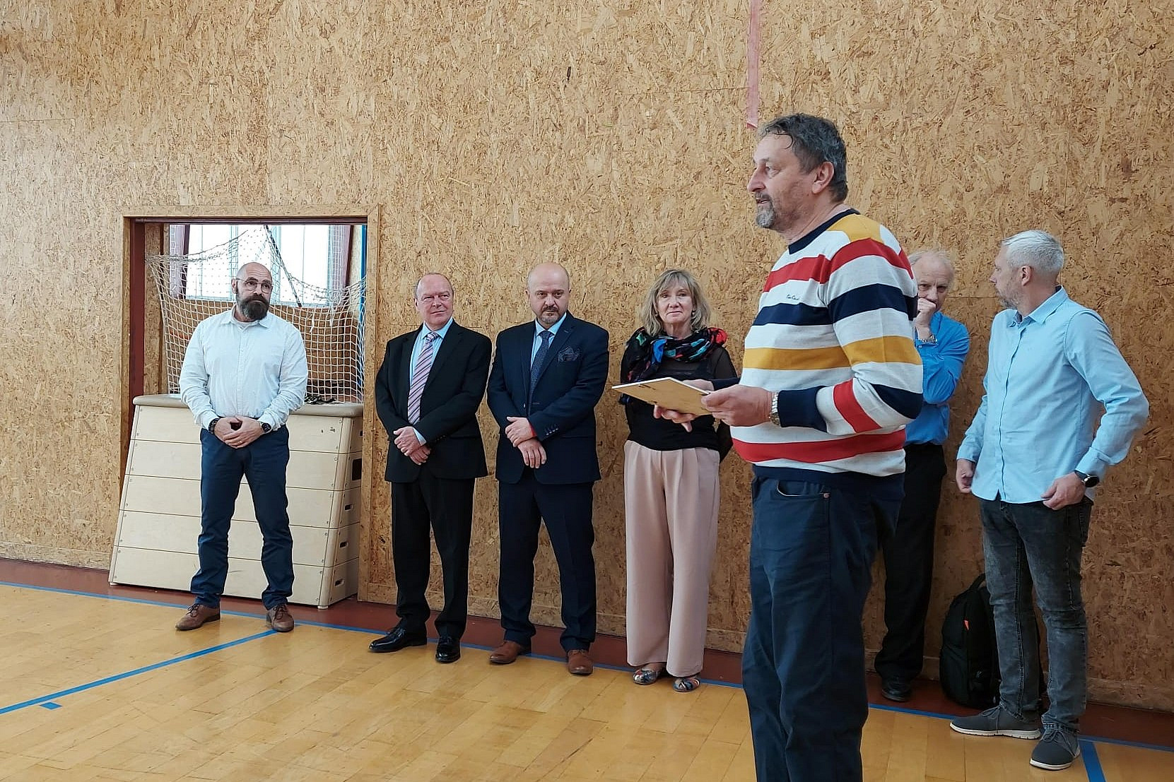 Slova p. ředitele plynou a já slyším o pěti hodinách tělocviku v rozvrhu, výborném kolektivu trenérů, o velkém zájmu rodičů o sportovní třídy, ano o sportovní třídy. V hlavě mi probíhají všechny ty roky, kdy jsem ve sportovních třídách trénoval a učil. Trochu vypadávám z role a před očima se mi objeví fotografie a slyším, jak p. ředitel říká, že už jim tělocvičny při čtyřech třídách v ročníku nestačí a že mají připravený projekt nové haly přímo v areálu školy, světe div se… Představitelé zřizovatele dávají jednoznačně najevo, že projekt má šanci a je již zařazen do souhrnu budoucích investic. Nejsem naivní a vím, že cesta k nové hale bude ještě dlouhá, ale již začala.