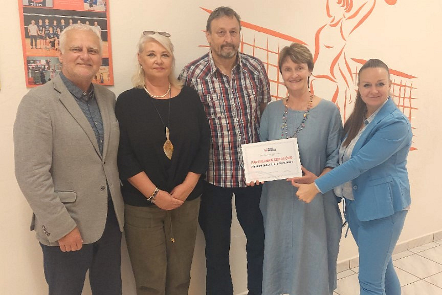 Předání titulu „Partnerská škola ČVS“ se samozřejmě zúčastnila ředitelka školy p. Mgr. Rejzková, zástupci zřizovatele - náměstkyně „Primátora“ Martina Hladíková a Jana Bazelová. Oddíl zastupoval trenér mládeže Petr Jakubíček a nesměla chybět i dobrá duše a hlavní osoba volejbalu ve Zlíně, Roman Macek.