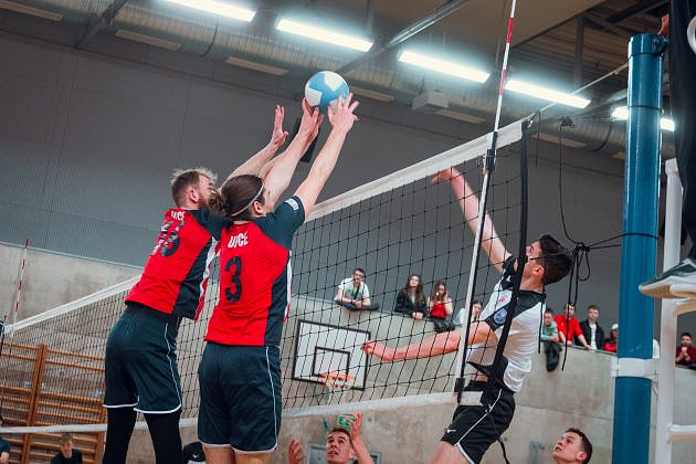 Volejbalisté UTB se dostali do vedení 2:0 na sety. Tento stav již zaručoval UTB postup a z lavičky dostali šanci si zahrát další studenti. MUNI srovnalo stav na 2:2 a diváci viděli dlouhé pěkné výměny. Do pátého setu opět nastoupila základní sestava domácích a zápas volejbalisté UTB dotáhli do vítězného konce v poměru 15:10. Celkově pěkná a vydařená akce, kterých by bylo hezké na VŠ organizovat větší počet.