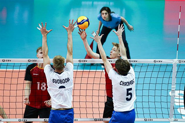 Ve třetím setu se opět objevilo více nevynucených chyb na české straně, což umožnilo Německu držet vedení po většinu sady. Klíčovým momentem byly dva přímé body z podání nahrávače Matyáše Chromce, které otočily vývoj setu, a Češi už vedení nepustili. Zápas pak symbolicky ukončil úspěšným blokem blokař Štěpán Svoboda, který si v utkání připsal celkem 5 bloků a byl platným hráčem i v útoku. Nejvíce bodů zaznamenal univerzál Tomáš Brichta, který zakončil utkání se 16 body.