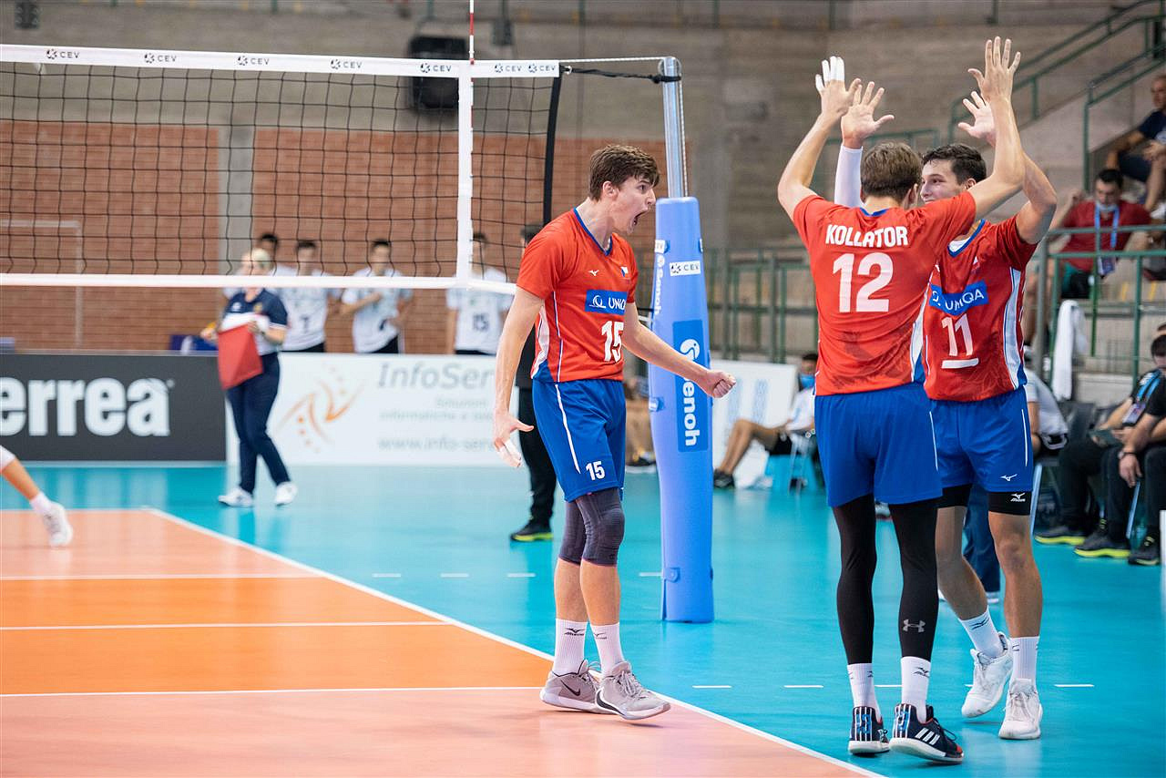 ČR U19: Bryknar, Ureš, Bukáček, Kollátor, Jirásek, Klajmon, libero Šálek. Střídali: Hoang, Stieber, Benda, Leština, Tóth