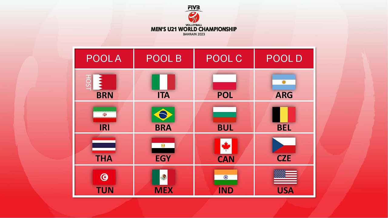 Mistrovství světa U21 mužů 2023 hostí od 7. – 16. července Bahrajn. Mezi šestnácti týmy, které jsou rozděleny do čtyř základních skupin, nebude v Manamě chybět ani náš reprezentační výběr. Svěřenci Jana Svobody byli nalosováni do skupiny D, ve které se postupně střetnou s Belgií, Argentinou a USA.
