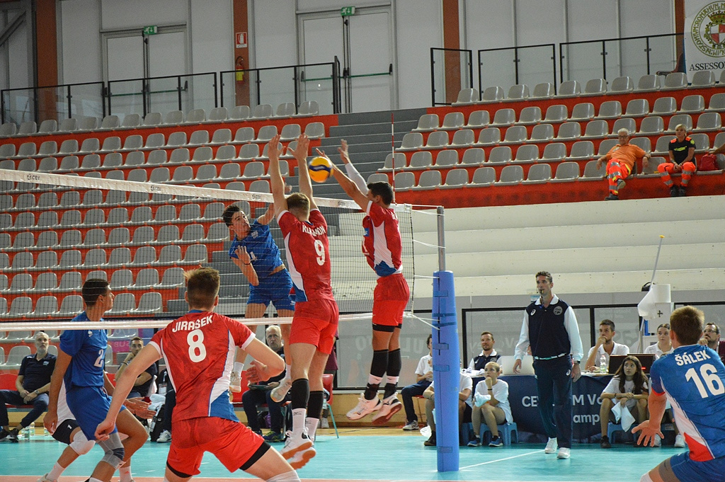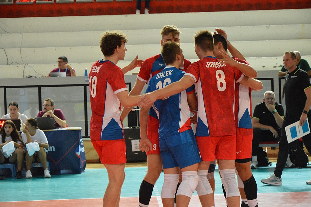 Naši reprezentanti pokračovali v dobrém výkonu i v úvodu třetího setu, Řekové stále hledali recept na naši obranu, 8:4. Poté však náš tým vyrobil dvě tři nevynucené chyby, přidal několik nedůrazných útoků a soupeř vycítil šanci na zvrat. Řekové byli rázem jako polití živou vodou a od stavu 15:15 se na palubovce odehrávala bitva o každý míč. Do koncovky naši junioři vstupovali za nepříznivého stavu 20:21. Naštěstí jim soupeř pomohl jednou nevynucenou chybou v útoku a jednou technickou chybou. Za stavu 24:22 Řekové ještě vykřesali jiskřičku naděje úspěšným útokem a snížili na 24:23. Následně však náš druhý mečbol po výborném příjmu Matěje Šálka nekompromisním útokem využil David Kollátor a v důležitém zápase Češi zvítězili poměrem setů 3:0.