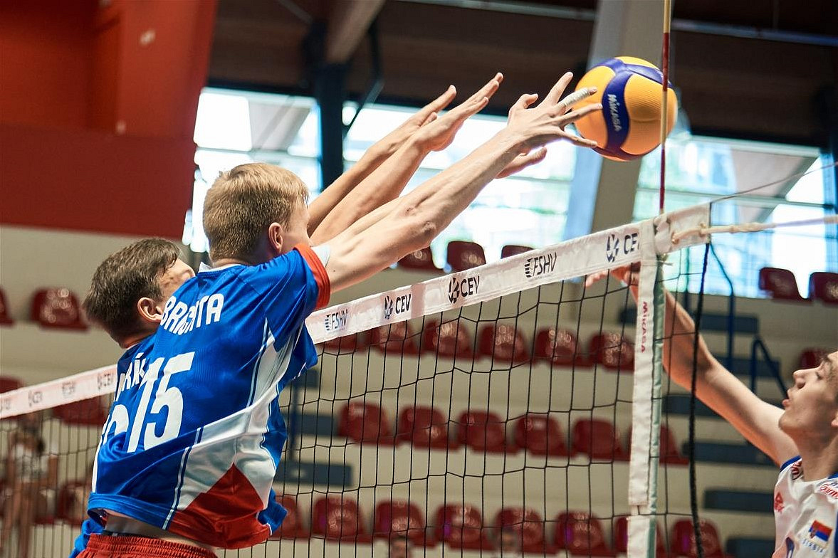 V druhém zápase nastoupili naši hráči proti týmu Srbska. Bohužel do tohoto zápasu nemohli kvůli karanténě zasáhnout kapitán Matěj Pastrňák a Jan Černý. Zápas byl od začátku velice vyrovnaný až do stavu 12:10, kdy naši hráči dokázali vybojovat mírný dvoubodový náskok. Drobný náskok si naši hráči drželi až do stavu 19:17, kdy na nepříznivý stav musel reagovat trenér Srbska timeoutem. Timeout hráčům Srbska velice pomohl, protože se dostali zpět do hry a dokázali srovnat krok. V koncovce prvního setu jasně dominovali srbští hráči ve všech činnostech, proto zaslouženě zvítězili 25:21.