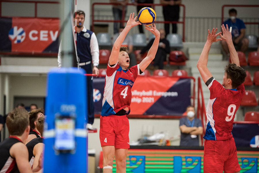 Zápas o přímý postup na mistrovství Evropy do 17 let začal velmi vyrovnaně. Po krásné technické ulívce domácího kapitána Matěje Pastrňák a jeho následných dvou blocích šli Češi poprvé do většího vedení (13:8). Domácí tým prokázal v řadě zákroků v poli svou obětavost a bojovnost a vedení Lvíčat narůstalo (18:11). Belgičané se ale nevzdávali, naopak na české straně se přidalo pár chyb a po esu belgického kapitána Kobe Verwimpa vedli svěřenci Jiřího Zacha jen o dva body (22:20). Belgičané se dokonce dostali k setbolům, oba ale vyhodili do zámezí. Po krásné akci, zakončenou belgickým Berrem van Looverenem, hosté otočili první sadu a vyhráli 25:27.