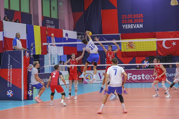 Chlapecká reprezentace U16 zahájila evropský šampionát v Jerevanu zápasem proti Srbsku. Úvodní nervozitu setřásli ze sebe naši mladíci v průběhu druhého setu, do konce utkání už byli lepším týmem a zvítězili 3:1. Na utkání se přišli podívat a podpořit náš tým i zástupci české ambasády v Jerevanu. Velké poděkování patří především Mgr. Sabině Novákové (I. tajemník, zástupkyně vedoucího zastupitelského úřadu) za zorganizování této příležitosti a za naši podporu během zápasu.