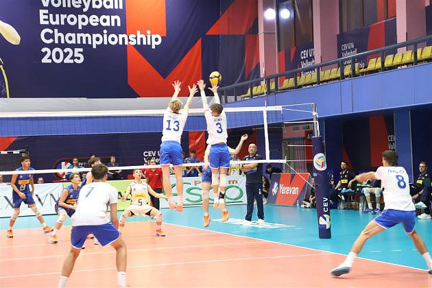V úvodu utkání se českému týmu při podání Filipa Štrejbara podařilo odskočit na 4:0. Italové to zastavili oddechovým časem, po kterém se oklepali, donutili české mladíky vytvořit několik chyb a šli do vedení 6:4. Po příchodu Vojty Pětiokého na podání se podařilo srovnat a následně jít i do vedení 9:8. Následovala vyrovnaná pasáž, ve které bylo vidět spoustu dlouhých rozeher. Při podání Lukáše Jelínka se pak podařilo odskočit na 16:14. Po stále lepších obranách a dohraných míčích zvýšil Honza Frydrych na 20:16. Za stavu 22:17 to Italové zkoušeli změnit pomocí dvojstřídání, obraz hry se ale nezměnil.