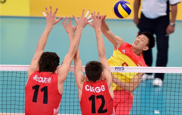 Druhá bitva o postup do boje o 5. místo začala také vyrovnanou první sadou. Ani jedno z družstev nebylo schopné protivníkovi odskočit na rozdíl více jak 3 bodů. Rozhodovalo se nakonec až v těsné koncovce – 27:25, kterou pro sebe získalo mužstvo Kanady. Do druhého setu vlétla o kousíček lépe Kanada, která si po celou dobu držela od svých soupeřů mírný tří až čtyřbodový náskok, který ale postupem setu ztratila. Na tabuli skóre bylo tedy možné vidět vyrovnaný stav 23:23. Tým Číny nakonec Kanaďany předčil přesnou přihrávkou a razantním útokem 26:24 a vyrovnal stav setů na 1:1. Třetí set se vyvíjel v podobném duchu jako set druhý, ale Kanada si i v závěru udržela bezpečný odstup a bez obtíží si dokráčela pro vítězství 25:21. Čína ale ve čtvrté sadě nabrala druhý dech a po celou dobu držela své soupeře pod tlakem. Číňané si udržovali mírný náskok, který ale stejně, jako Kanada ve druhém setu, postupně ztratila a o zisk setu se týmy utkaly až v dechberoucí koncovce. Tuto nakonec ovládla asijská země 28:26 a srovnala misky vah setů na 2:2. Zápas tedy vyústil v další zkrácenou sobotní sadu, která skýtala souboje o každý míč a neuvěřitelné zákroky v obraně na obou polovinách. Od stavu 9:8 se ale stébla zachytila Čína a týmu ze zámoří nepovolila již ani bod a zaslouženě zvítězila závěrečným skóre 3:2 15:9 v tiebreaku.