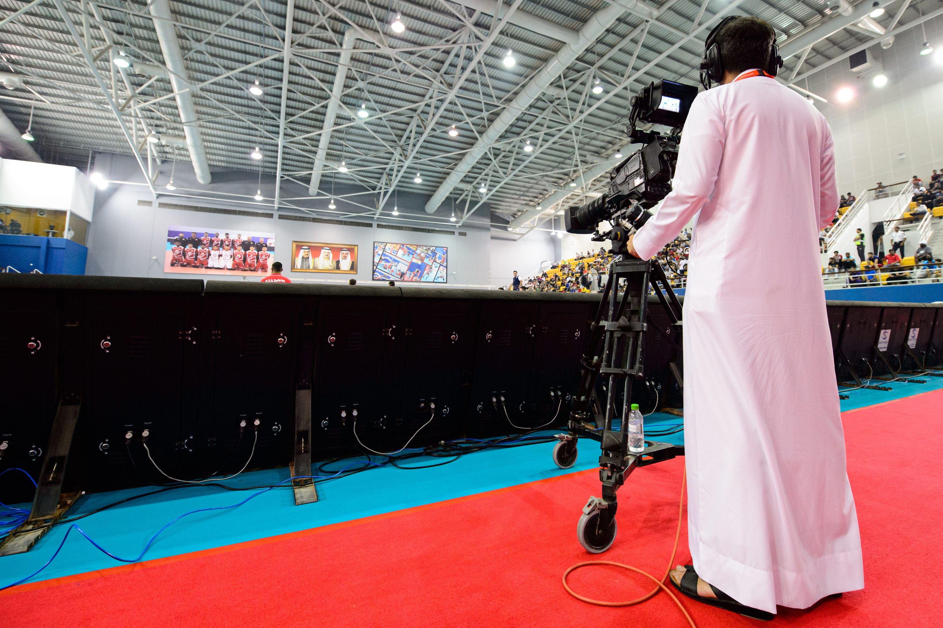 Zápas nám začíná až po obědě, takže dopoledne není žádný spěch. Vydatná snídaně, porada, lehký oběd a hurá do haly. Stěhujeme se z haly C do haly B, které jsou od sebe pouze dvacet metrů a stejné jako vejce vejci. Pouze kamery bahrajnské televize zde chybí. Dokonce bych řekl, že tato hala, která se výhradně používá na ping-pong, je útulnější.