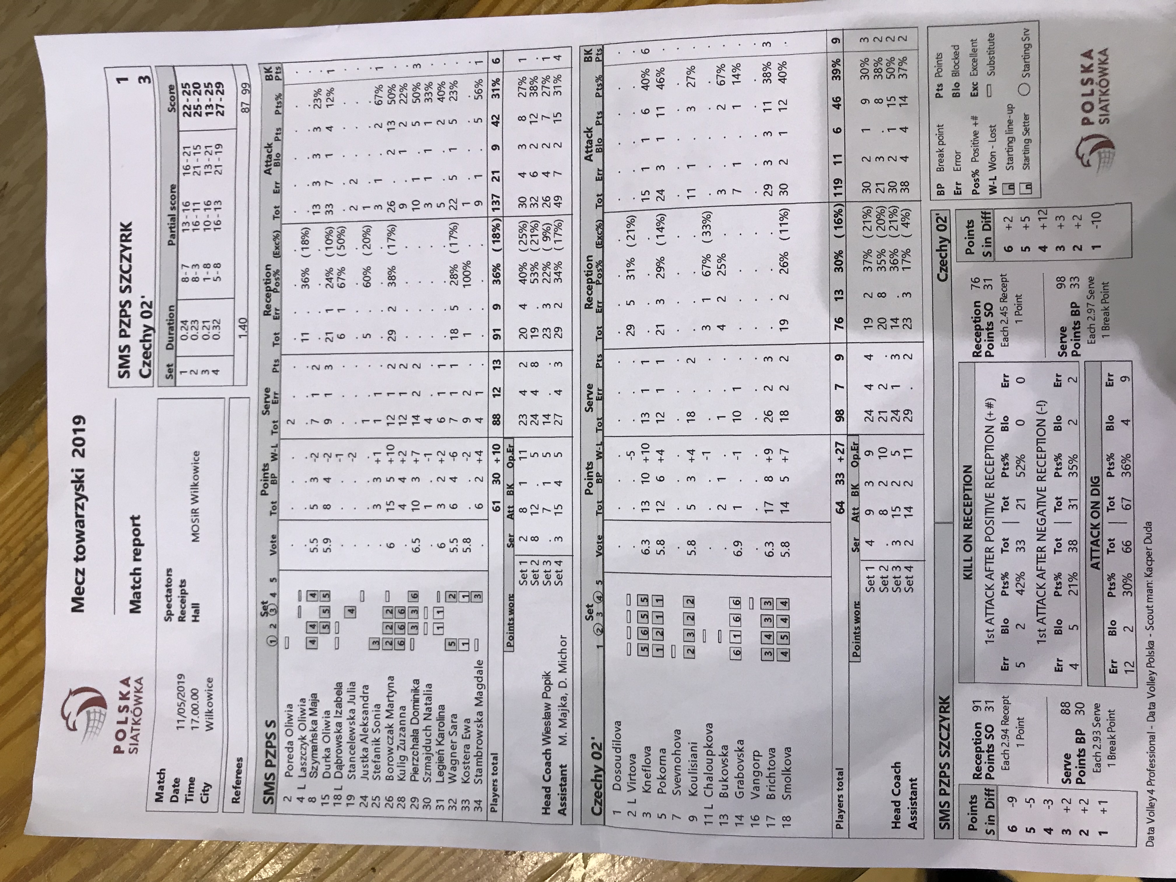 Čtvrtý set je tou pravou bitvou. Polky se nevzdávají, nechtějí odejít na domácí půdě poražené. Trenér W. Popik míchá sestavou. Nám opět pomáhá Chaloupková, van Gorp i Bukovská. Závěrečné rozehry jsou proloženy velkou bojovností, ale i velkými chybami na obou stranách. Štěstí však přeje připraveným, těmi jsme byli po dobře odvedené práci v Mikulově a především v Radotíně my a těšíme se z vítězství nad silným soupeřem v poměru 3:1.