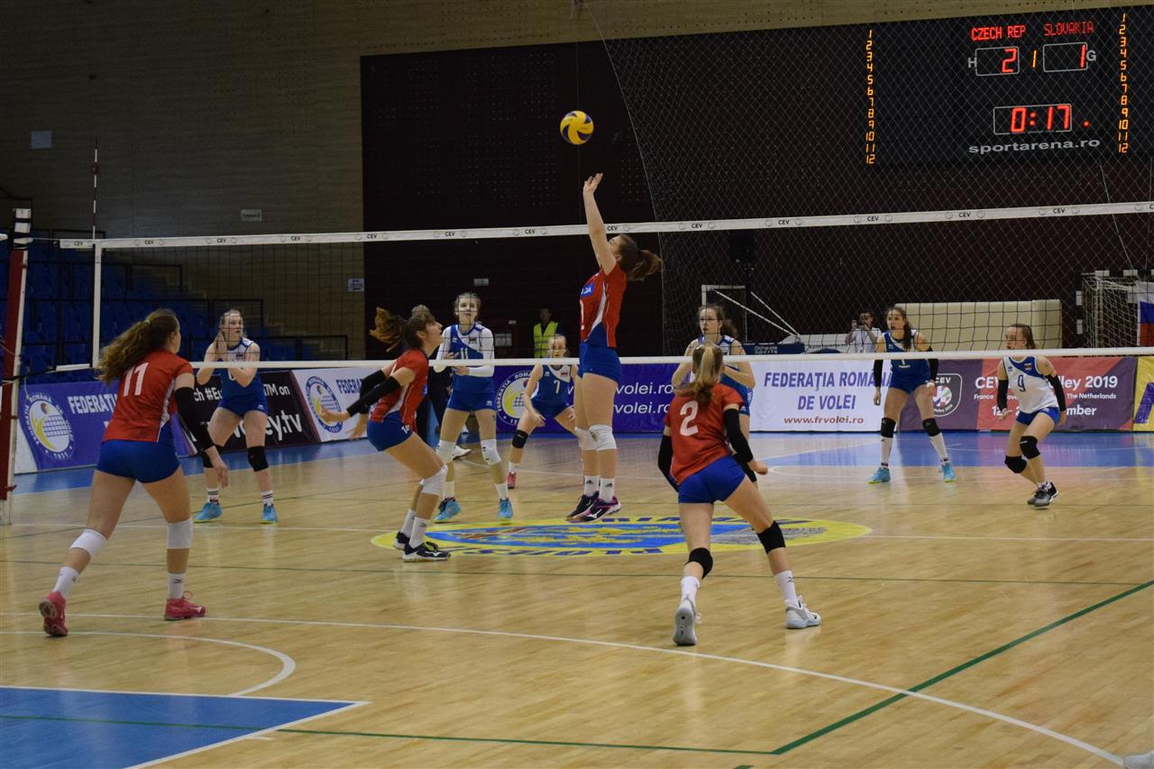 Do utkání vstoupily oba týmy s vědomím, že soupeř je takticky dobře připraven a výsledkem byl vyrovnaný průběh celého prvního setu. V koncovce však slovenské hráčky předvedly několik obětavých zákroků v obraně a trenéru Markovi Maličkému vyšlo i taktické střídání. Češky byly horší na přihrávce a následně nedokázaly ubránit soupeřův útok z hlavního kůlu a i proto prohrály první set 23:25.
