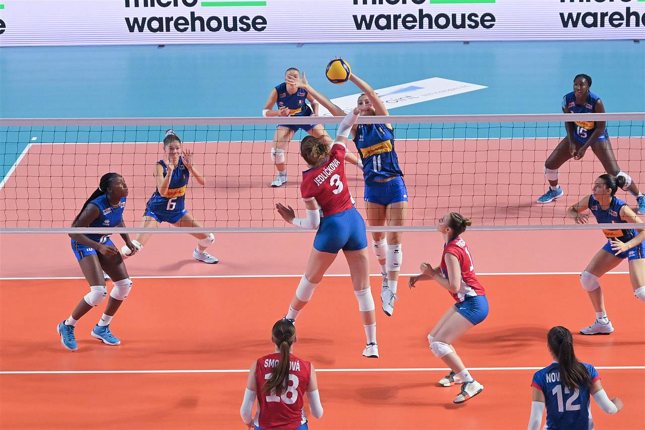 Ve třetím dějství měly Češky soupeře na dohled až do stavu 19:17. Následovaly ale tři rychlé body v řadě hráček v modrém a tím bylo rozhodnuto i o výsledku utkání.