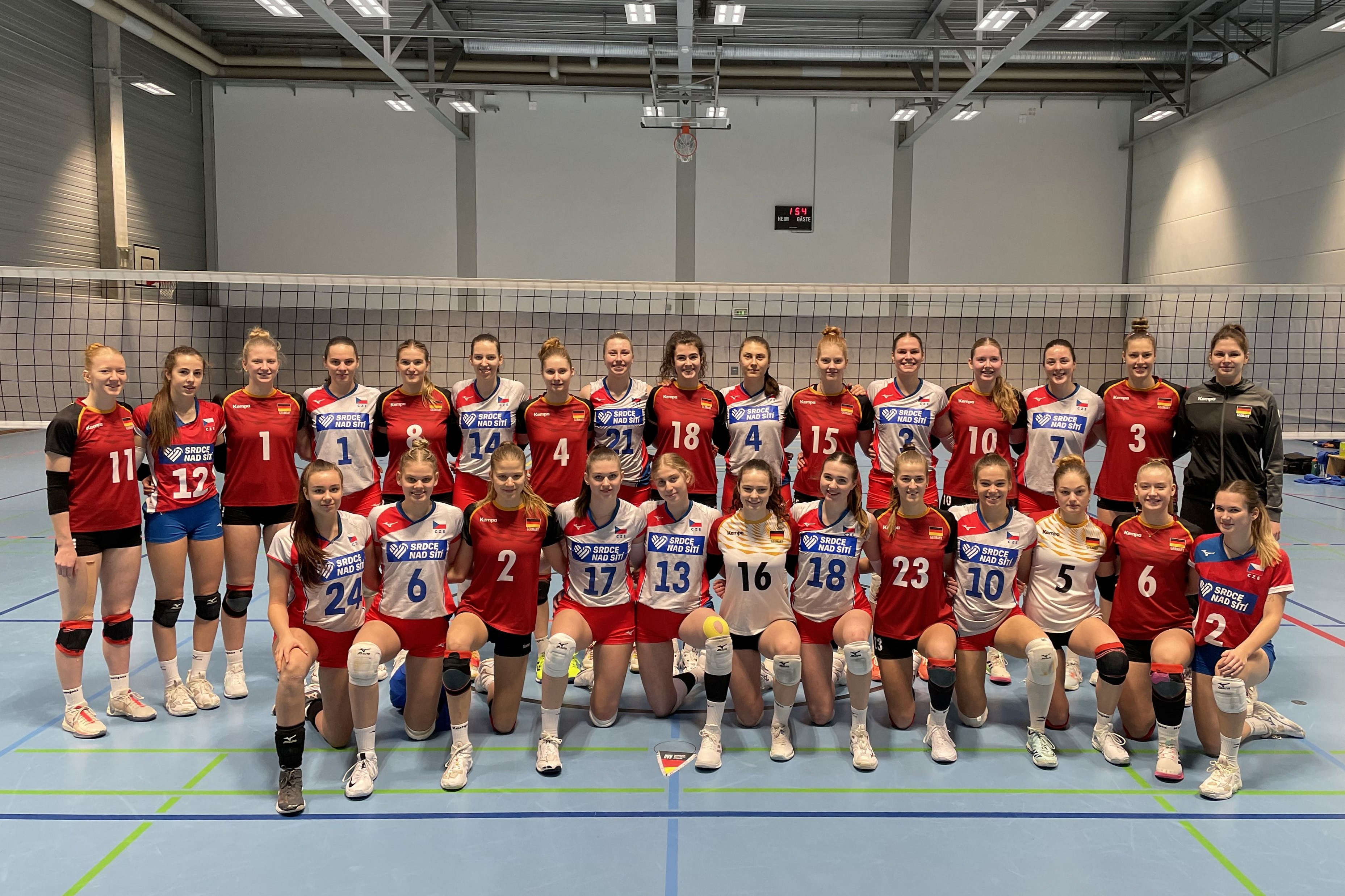 V prvním ze třech utkání český výběr své německé protihráčky dokázal zatlačit koncentrovaným výkonem a jednoznačně ovládl první dva sety. Zdobila ho velmi dobrá obrana v poli, dobrý příjem a zejména odvážný útok a podání. Od třetího setu se bohužel české hráčky přizpůsobily hře soupeře a hra se postupně vyrovnala. Češky ale dokázaly urvat koncovku třetího setu pro sebe a uzavřely oficiální výsledek utkání na 3:0. Po dohodě obou trenérů se hrály ještě další dva sety, kde dostaly herní příležitost další hráčky. Oba výběry při vyrovnanější hře získaly po jednom vítězném setu.