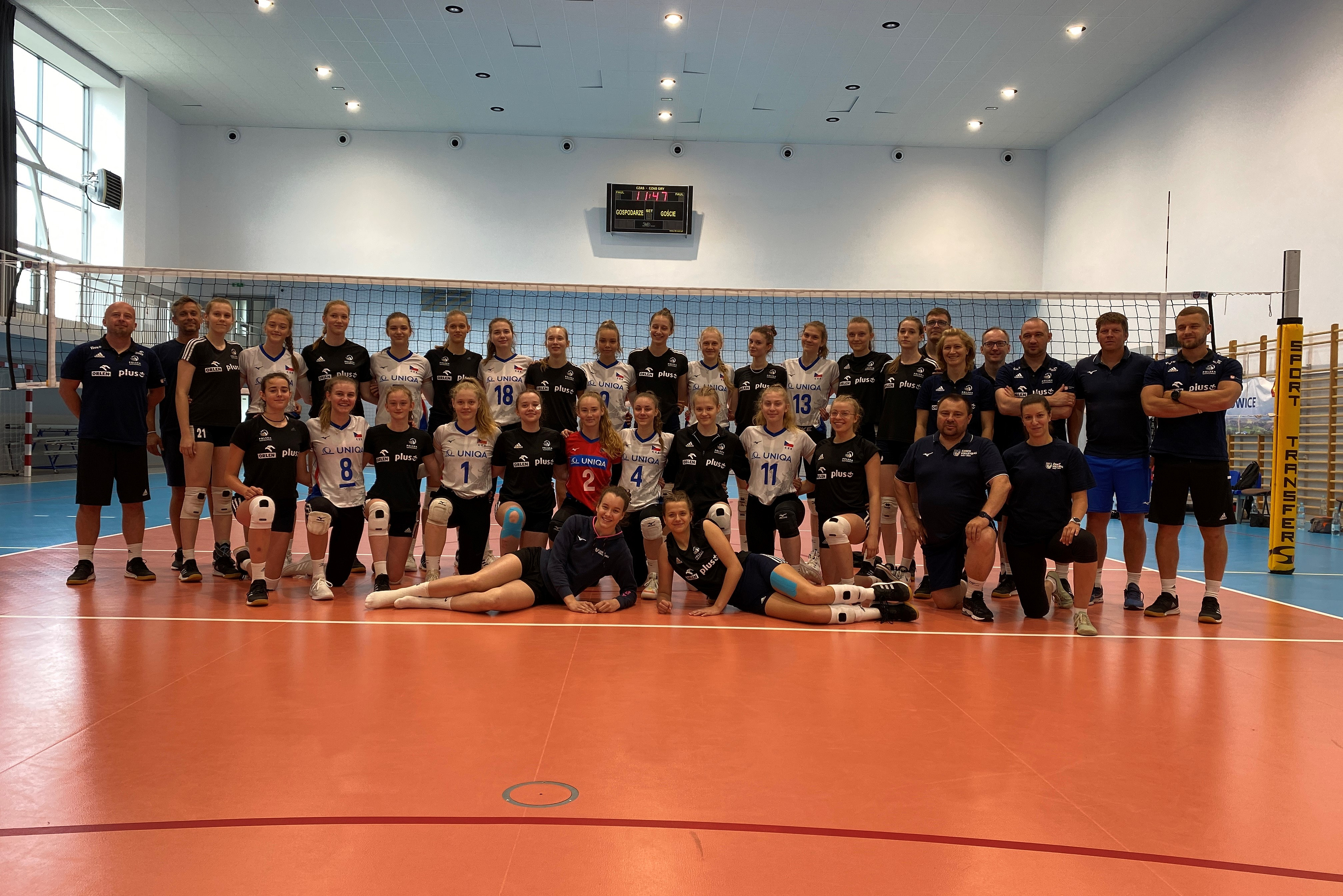 Po náročných dvou sobotních utkáních čekala svěřenkyně Aleše Nováka ještě poslední prověrka s kvalitním soupeřem v neděli dopoledne. Utkání skončilo remízou 2:2 (25:19, 24:26, 10:15 a 15:10).