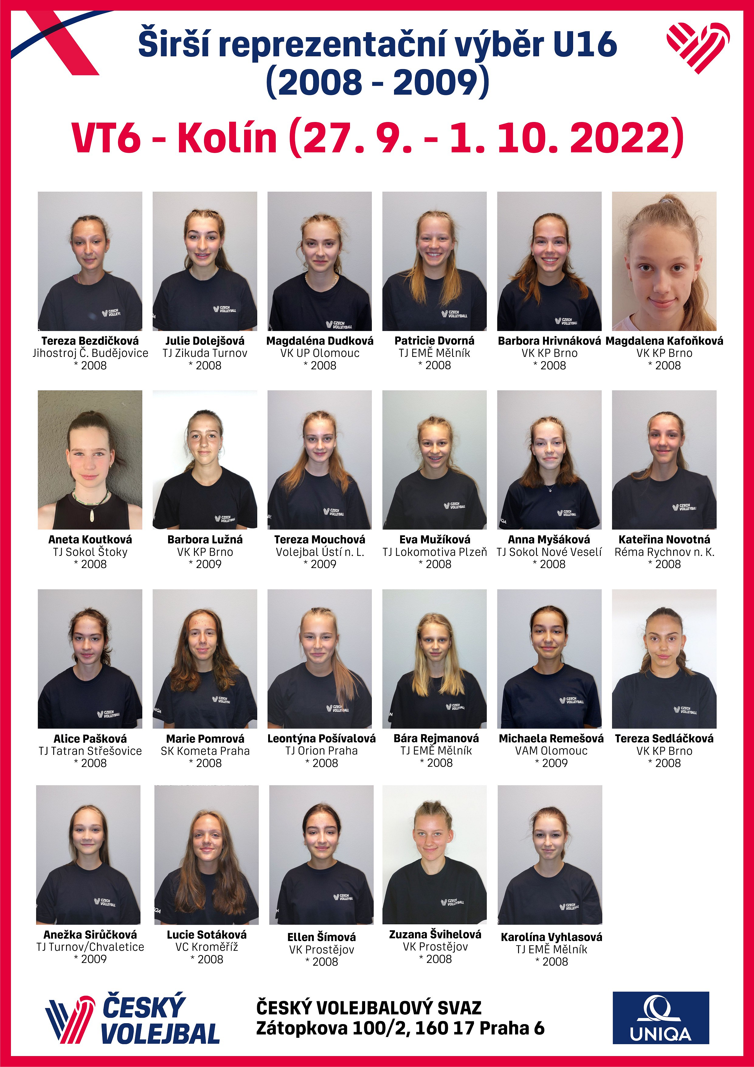 Širší reprezentační výběr dívek U16 (2008/2009) se po nedávném zahraničním herním a tréninkové soustředění opět sejde na tréninkovém kempu, který se bude konat ve dnech 27. 9. – 1. 10. 2022 v Kolíně.