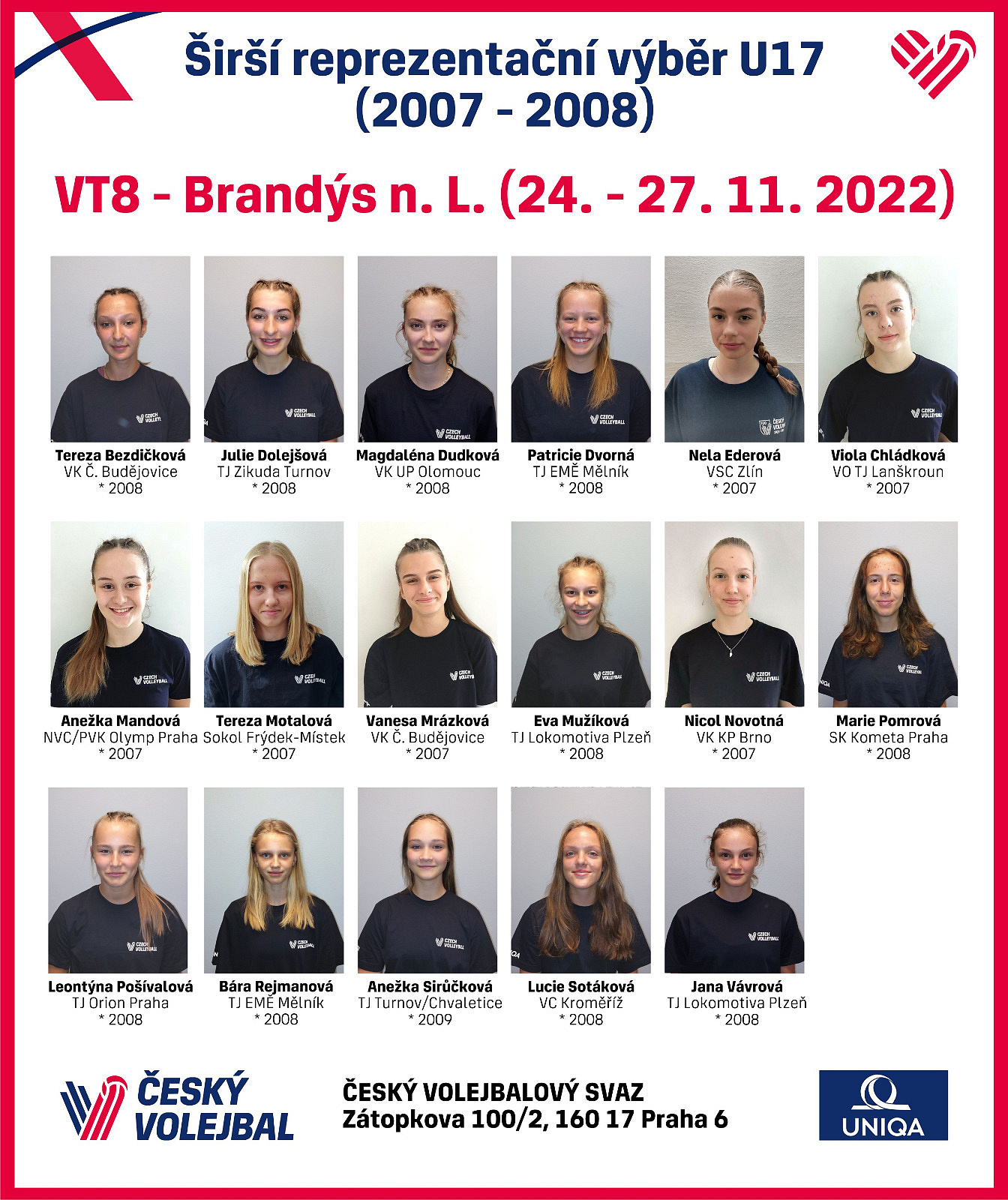 Reprezentační družstvo dívek U17 zahajuje závěrečnou fázi přípravy na svou úplně první evropskou kvalifikaci, která se uskuteční ve slovenské Nitře (5. – 7. ledna 2023). Realizační tým vybral 17 hráček ročníků 2007 – 2009, aby se s nimi sešel na již 8. společném srazu. Ten se uskuteční ve dnech 24. – 27. listopadu 2022 v Brandýse nad Labem.