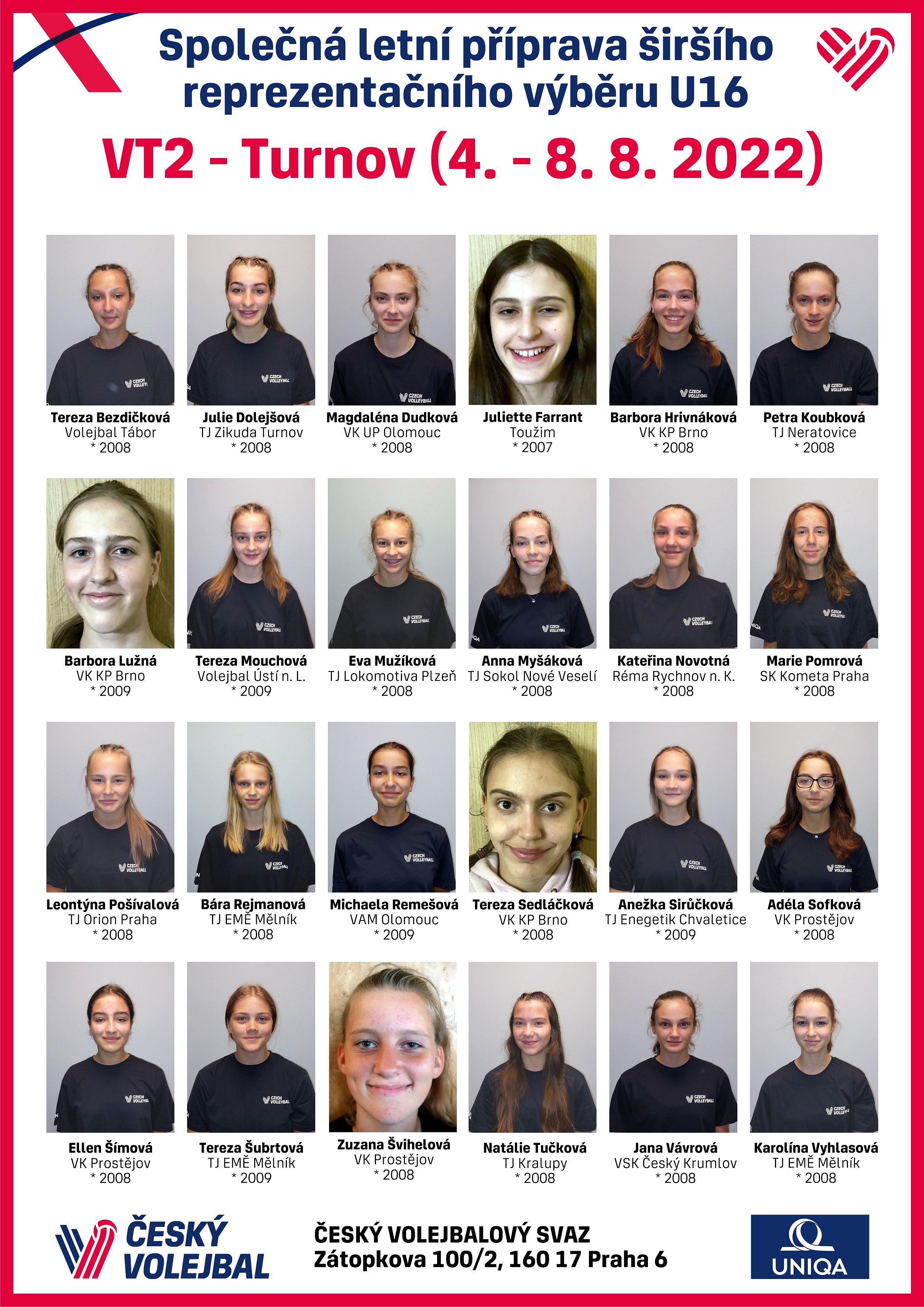 Ve dnech 27. – 31. 7. 2022 se v Kladně uskutečnil první kemp společné letní přípravy širšího reprezentačního výběru dívek U16. Součástí akce byla seznamovací schůzka hráček, rodičů a realizačního týmu. Během úvodního VT1 jsme se věnovali nastavování týmu - společně jsme si určili týmová pravidla, mapovali jsme osobní cíle a motivaci, prodiskutovali jsme základní hodnoty našeho týmu. Na palubovce jsme se po určité prázdninové tréninkové pauze „seznamovali“ s balóny, zaměřili se na pohyb bez míče, základní postoj při příjmu, začali se věnovat podání, které by mělo být jednou z priorit. Hráčky se s kondičním trenérem věnovaly intenzivně fyzické přípravě a s naší fyzioterapeutkou absolvovaly úvodní základní vyšetření.