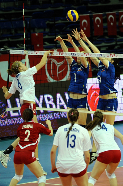První set: Nízká nahrávka na Trnkovou – Veronika do bloku, dvoják na nahrávce Aničky Pospíšilové – 0:2. Veronika Trnková ulívá, Pospíšilová v síti – 1:3. Kateřina Nálezková do bloku – time out za stavu 1:4. Po time outu úspěšně útočíme po přihrávce, Slovinky oplácí stejnou mincí – 2:5. Slovinská blokařka kazí servis, Verča Trnková dává eso – 4:5. Bohužel ihned po esu přichází zkažené podání, Klára Melicharová v útoku o soupeřův blok – 5:6. Zkažený a záhy úspěšný bod Slovinek 6:7. Tereza Patočková úspěšně útočí, Slovinky dělají totéž – 7:8. Technický timeout.