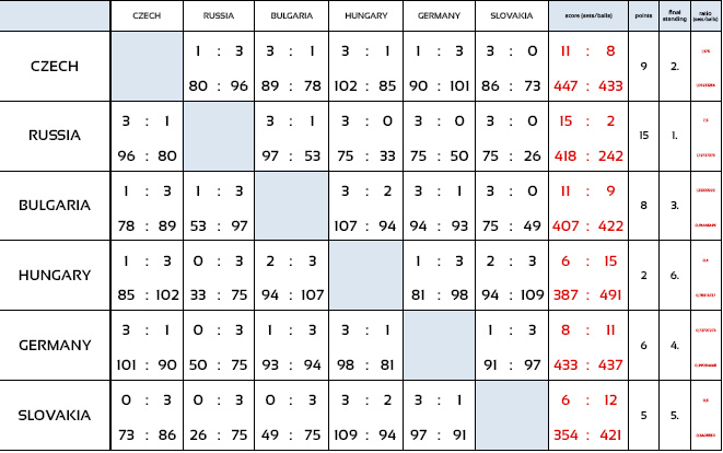 4. kolo 15:00 RUS - HUN 3-0 (25-19, 25-9, 25-5)