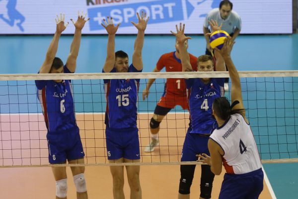Vstup do utkání není ze strany českého družstva ideální a musí dotahovat menší náskok soupeře. Od stavu 10:10 naši volejbalisté přidali na servisu a soupeři odskočili na rozdíl čtyř bodů 16:12. V dalším průběhu setu tlak na servisu ještě zvyšují a je z toho výhra v prvním setu 25:15.
