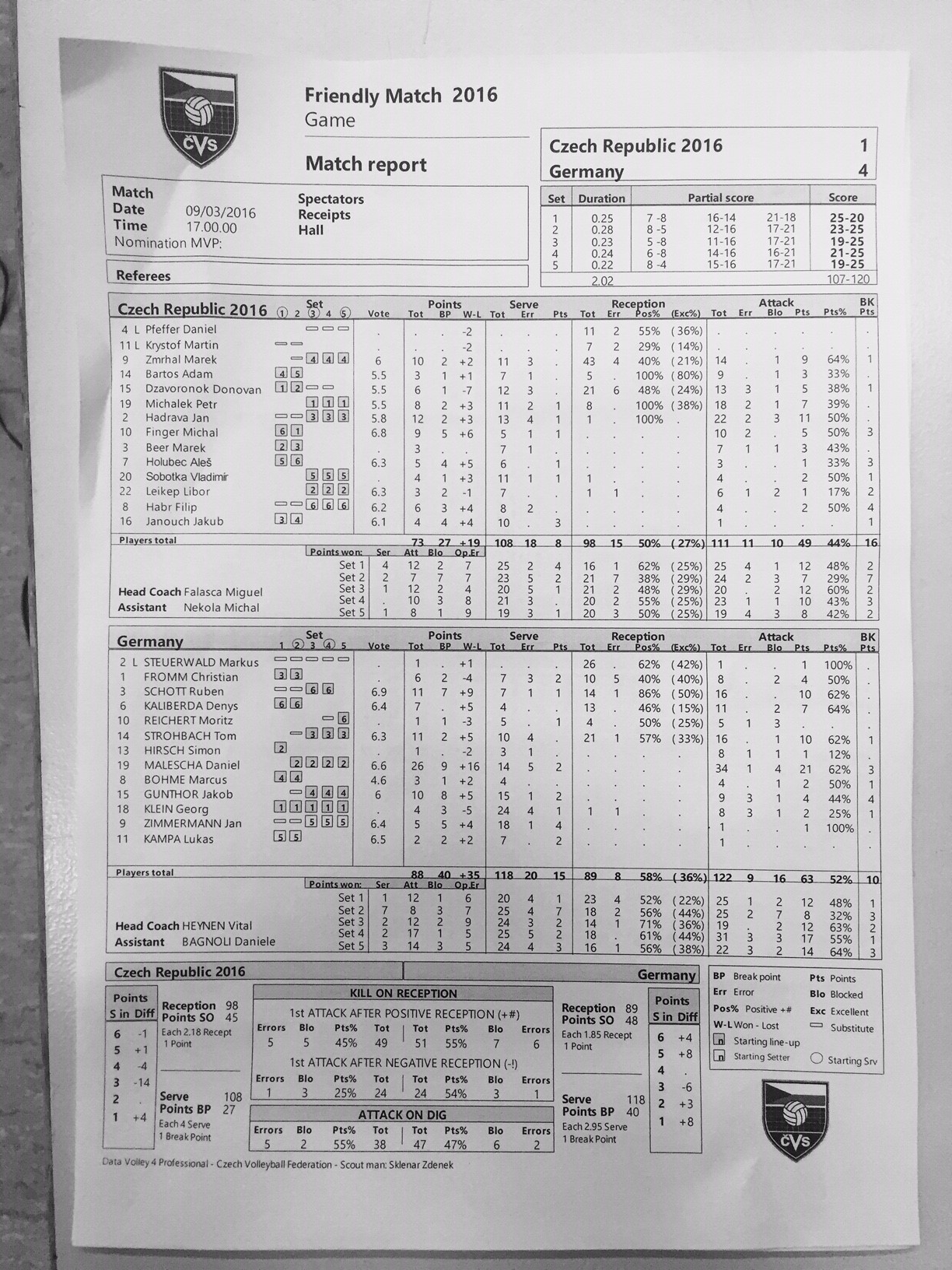 2. zápas: Česká republika - Německo 1:4 (20, -23, -19, -21, -19)