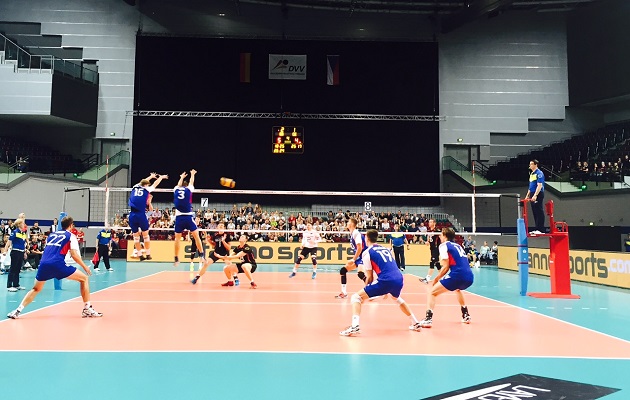 Nadějnou hrou i výsledkem se prezentovala v prvním utkání i česká mužská volejbalová reprezentace, která se představila v Brémách proti domácímu Německu. Češi bojovali a předváděli kvalitní hru. I tak těsně prohráli se silným německým výběrem 2:3. "Bylo to pro diváky pohledné utkání, které se muselo líbit. Byla k vidění řada kvalitních výměn. V tiebreaku jsme trochu polevili a to rozhodlo," zhodnotil utkání univerzál Michal Finger. Druhé utkání sehrali čeští reprezentanti v sobotu od 17 hodin, opět proti Německu. Ani v něm se výhry nedočkali, Německu podlehli 1:4 na sety.
