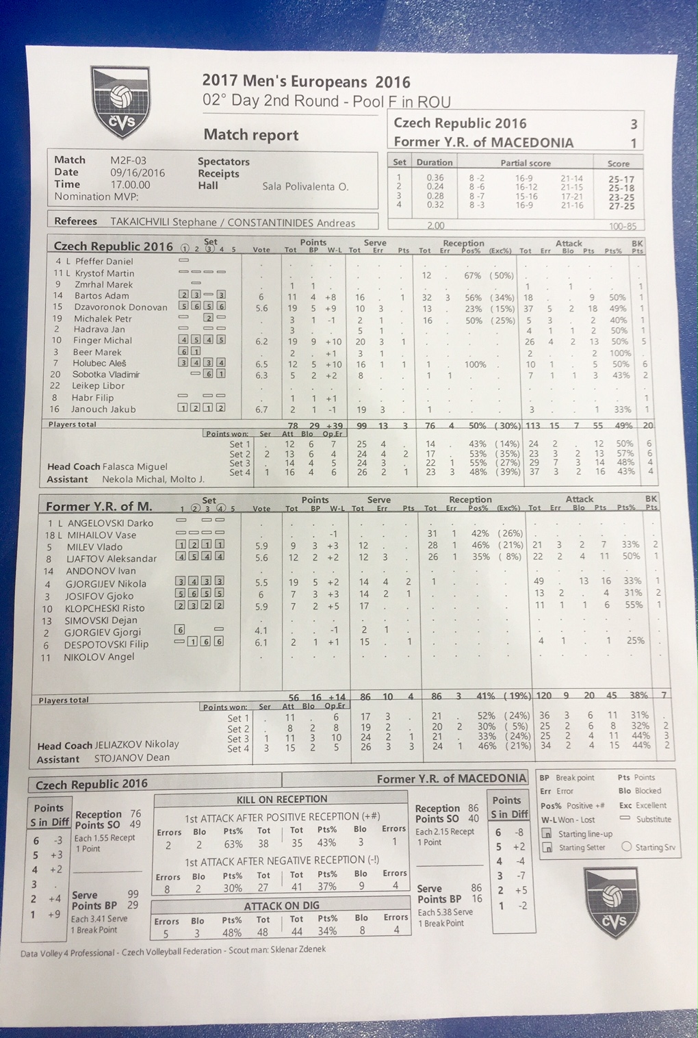 Česká republika - Makedonie 3:1 (25:17, 25:18, 23:25, 28:26)