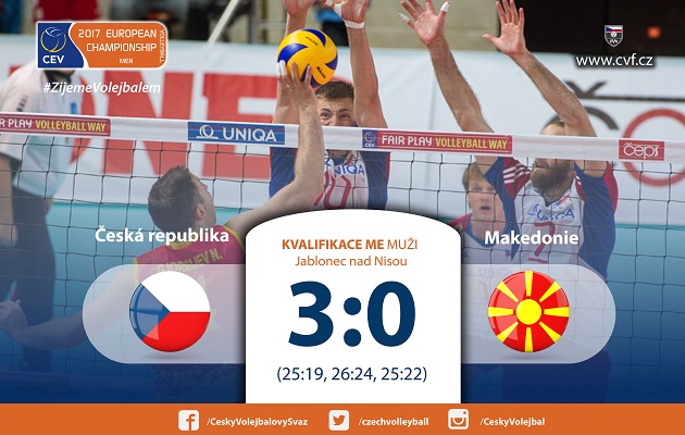Úvodní utkání v Jablonci nad Nisou sehrála česká reprezentace v pátek od 18 hodin proti zatím poslednímu celku skupiny Makedonii. Pozici favorita čeští volejbalisté potvrdili zcela jasně a přehráli Makedonii ve třech setech. K absolutní jistotě postupu na mistrovství Evropy chybí Česku získat ze dvou zbylých utkáních jedno vítězství. Zítra ve večerním utkání nastoupí Češi proti Rumunsku.