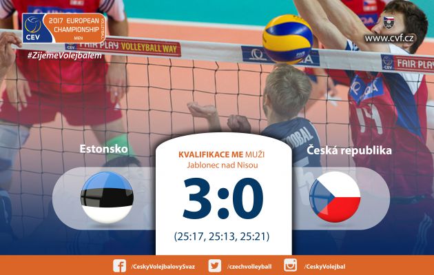 V evropská kvalifikaci mužů je ve skupině F rozhodnuto. Přímý postup na Mistrovství Evropy 2017 do Polska si již včera s předstihem zajistili čeští volejbalisté, kteří dnes v kombinované sestavě nestačili na o baráž stále bojující Estonsko. To si díky vítězství 3:0 na sety zajistilo druhé místo ve skupině a míří do třetí kvalifikační fáze ME.