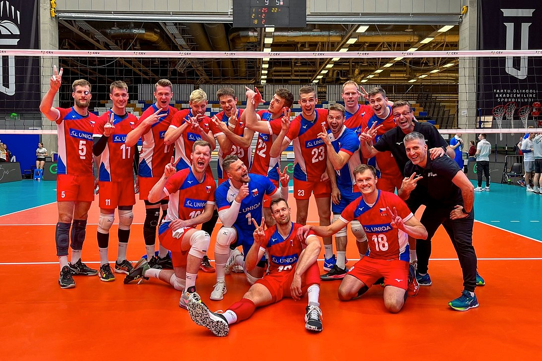 Na třetí set je vidět u našich borců odhodlání. Nicméně i Estonci zjistili, že mohou hrát a vývoj je jak po žebříku. I při stavu 8:8 se oběma týmům daří ztrátovat. Kapitán Juhkami přelévá vedení na stranu domácího týmu pomocí esa, ale náš kapitán Zajíček srovnává na 9:9 útokem středem sítě. Indra přidává své třetí eso a Polák blokem získává poprvé ve třetím setu pro náš tým dvoubodové vedení, 10:12. Obě libera se předvádí v poli, ale stále se nám daří držet především náš útok a tiebreakové vedení 13:15. Našim chlapům „seplo turbo” a i přes time-out domácího celku jsou ve vedení 14:19. Naše nepřesnost ve hře však vede českou lavičku ke zmáčknutí tlačítka a bere taky time-out 16:19. Estonsko sahá ke klasickému dvojstřídání, na hřišti se objevuje opět nahrávač Keel a univerzál Varblane. V samotné koncovce je náš tým důraznější a za stavu 18:23 přichází Marek Šotola ještě posílit blok. Konečný blok si ale připisuje Honza Galabov a český tým si bere zpět vedení v zápase.