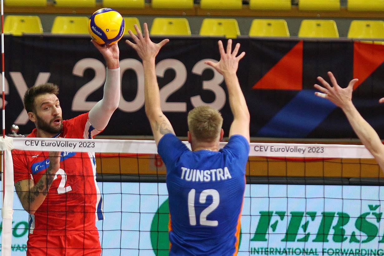 Ve vyrovnaném souboji s holandskými favority se českým volejbalistům nepodařilo získat ani set. Nejblíže úspěchu přitom byli ve třetí sadě, kdy vedli dokonce o pět bodů. Nakonec ale všechny části hry skončily shodným skóre. Na české straně se bodově prosadil univerzál Jan Hadrava, který skóroval patnáctkrát, připsal i jedno eso. Druhé trefil kvalitně servírující Donovan Džavoronok. Na nizozemské straně si 19 bodů připsal Nimir Abdel-Azíz.