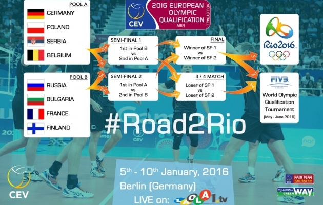 V německém Berlíně a turecké Ankaře se v těchto dnech rozběhl kvalifikační cyklus o postup na OH v roce 2016 konané v brazilském Riu de Janeiru. Kvalifikace mužů, která se hraje v německé metropoli, je rozdělena na dvě skupiny. Do skupiny A byly zařazeny domácí reprezentanti, Belgičani, Srbové a Poláci. V „béčku“ se pak představí celky Finska, Ruska, Bulharska a Francie. Z obou skupin postupují dva nejlepší celky do play off, ze kterého vzejde celkový vítěz, který postoupí přímo na OH do Ria. Mužstva na druhém a třetím místě postupují na závěrečný světový kvalifikační turnaj, který se odehraje v květnu a červnu letošního roku.