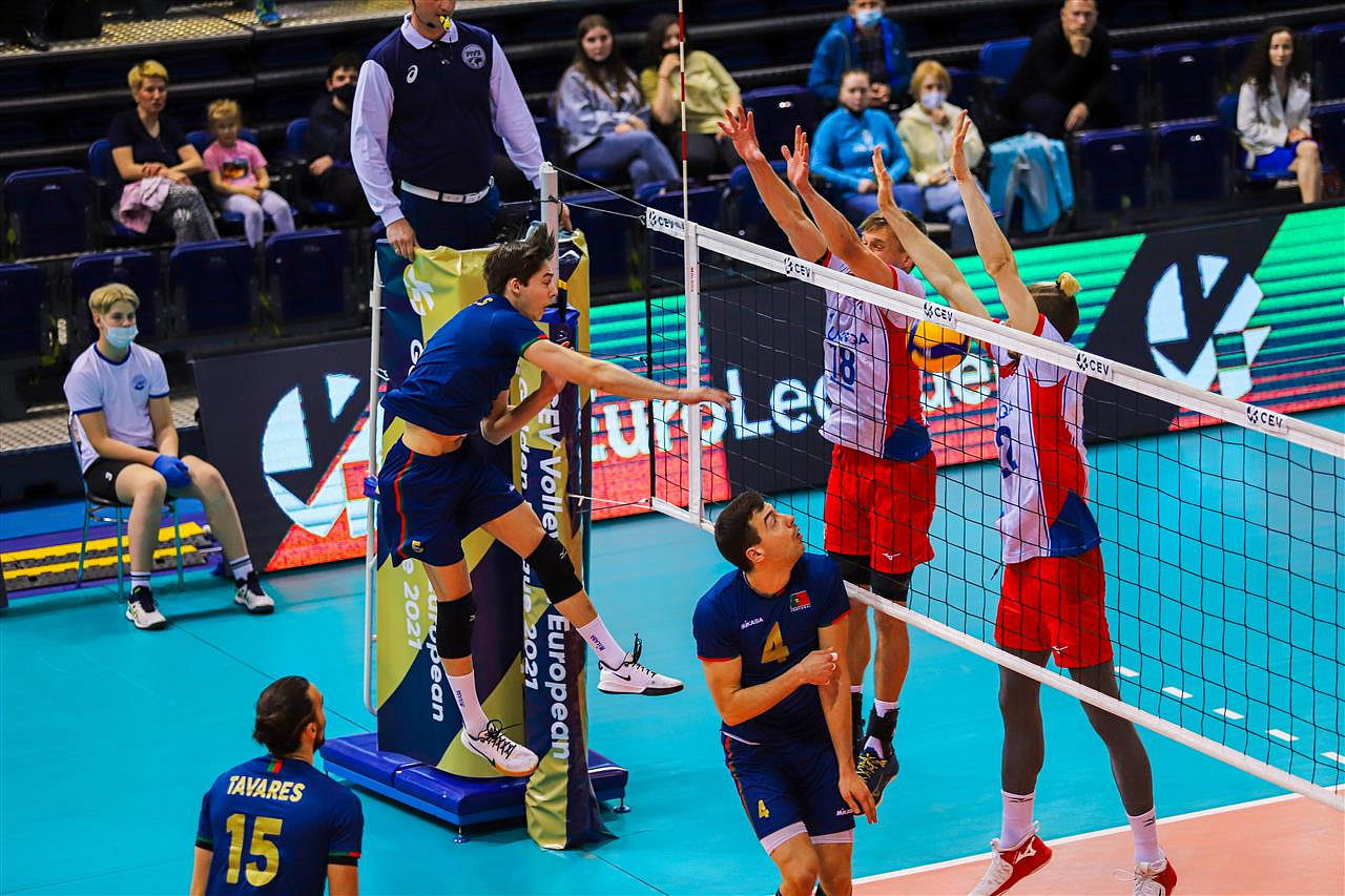 Proti Portugalsku jsme vstoupili se změnami v sestavě, příležitost v základní sestavě dostal Patočka a Moník. Hned zkraje jsme čelili velkému tlaku na podání, stav byl 1:4. Vyrovnání stavu nám zabránila dobrá účinnost Portugalců z vysokých nahrávek. Vašina ale přidal dvě esa a vyrovnal na 8:8. Dařil se nám útok středem, jak Patočka, tak Sedláček těžili z dobrých nahrávek Janoucha. Na 15:13 zvýšil chytrým útokem Hadrava, stejně chytře zakončoval další dlouhou výměnu Vašina. Do koncovky jsme vstoupili s tříbodovým náskokem, po dalším kombinaci středem sítě jsme vedli 21:17 a Portugalci si vzali již druhý oddechový čas. Set ukončil univerzál Jan Hadrava útokem z kůlu, 25:20.