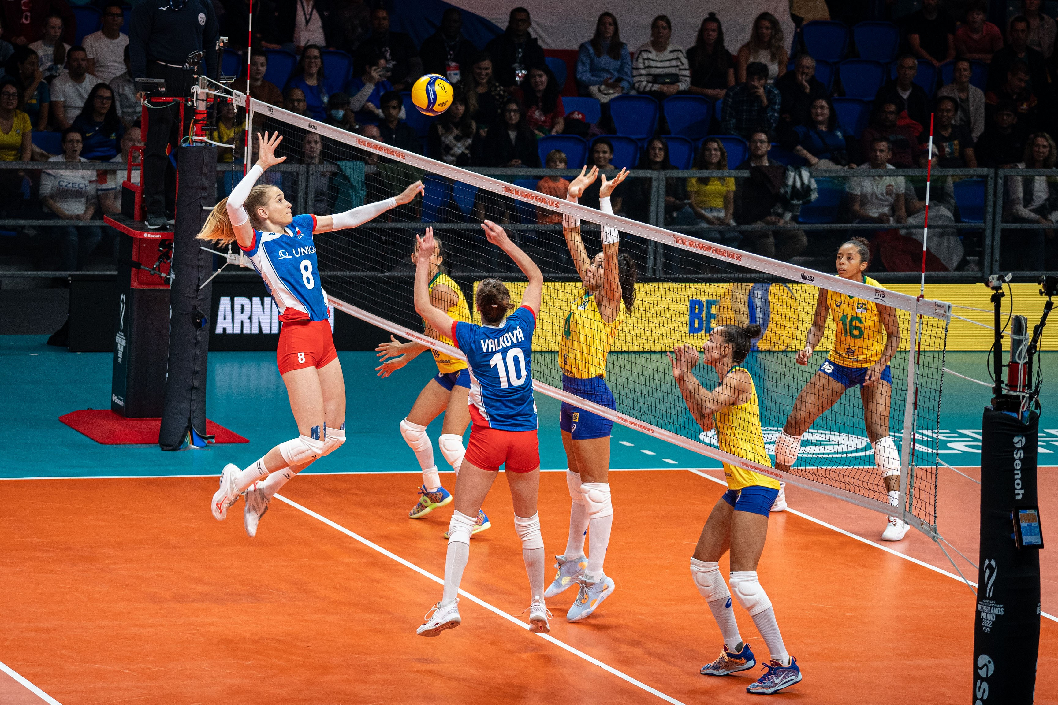 České volejbalistky vstoupily po dvanácti letech do utkání světového šampionátu sebevědomě a s favorizovanými Brazilkami v úvodní sadě držely krok. Na centrkurtu arény v Arnhemu set prohrály těsným rozdílem tří bodů, v druhé sadě ale ztrácely krok a Brazilky zvítězily poměrem 25:16. Zápletku přinesla vyrovnaná třetí sada, kdy se hráčkám v modrých dresech podařilo v koncovce překlopit skóre a přiblížit se na 2:1. Čtvrtou sadu Brazilky kontrolovaly a nad týmem Giannise Athanasopoulose zvítězily 3:1 na sety.