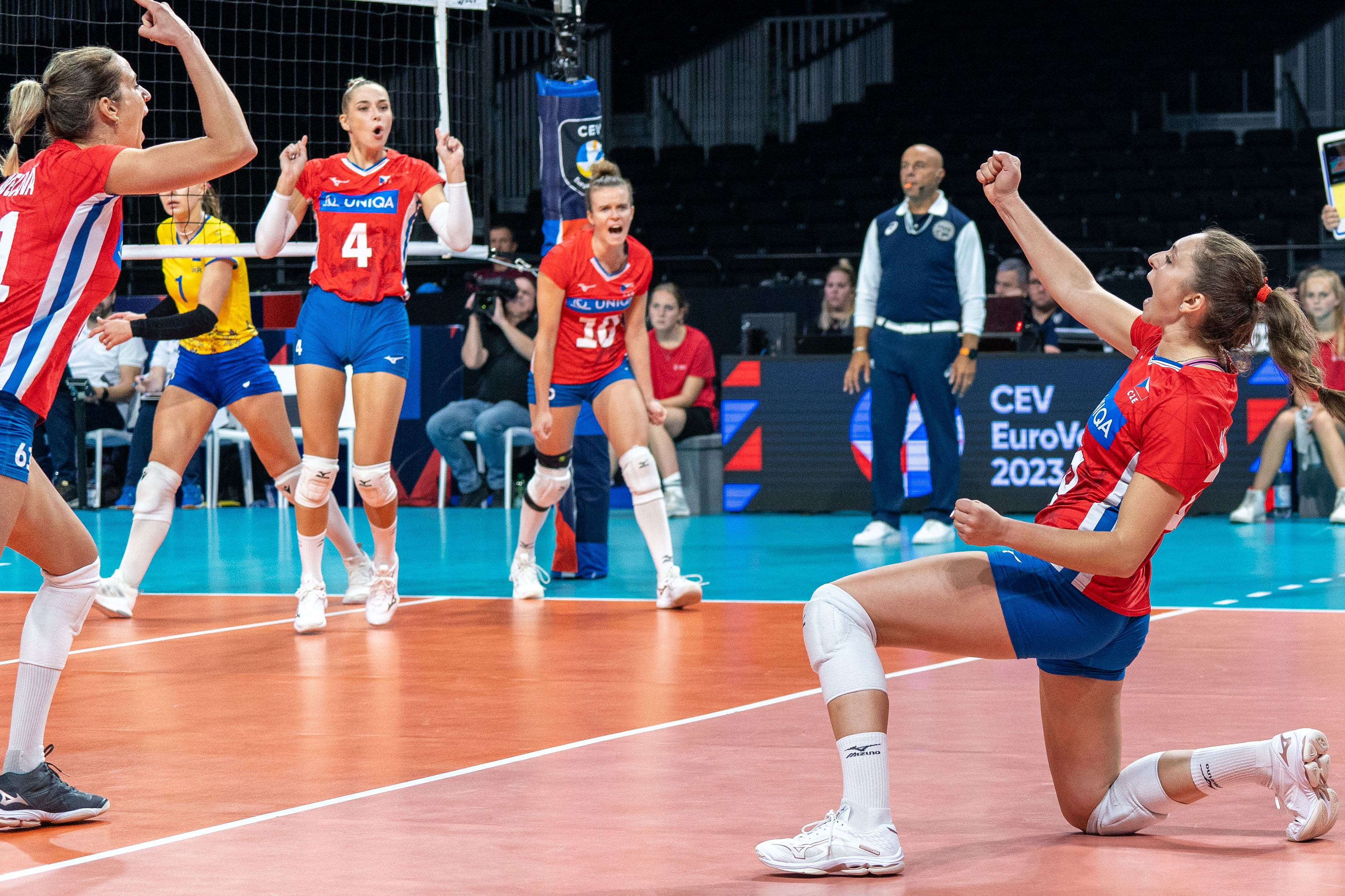 České volejbalistky si po vítězství nad ukrajinským výběrem došly pro postup do středečního čtvrtfinále mistrovství Evropy. V Bruselu se přitom na výhru nadřely v pěti sadách. Poté, co v prvním a druhém setu nechybovaly v poli a dařilo se jim v útoku, ztratily třetí set poměrem 20:25 a čtvrtý dokonce 10:25. Ve zkrácené sadě ale předvedla nejlepší výkon dosavadního průběhu šampionátu kapitánka Michaela Mlejnková, který dovedla své spoluhráčky k postupu. Mlejnková v osmifinále skórovala jednadvacetkrát, dvacet bodů přidala Gabriela Orvošová. Ve středu 30. srpna 2023 se od 20 hodin postaví český tým na kurt proti Srbkám, vítězkám loňského světového šampionátu. Ty v osmifinále jasně přehrály Švédsko po setech 25:17, 25:13 a 25:16. Podle Giannise Athanasopoulose bude zápas se Srbkami boj Davida s Goliášem.