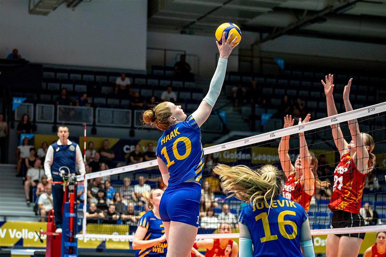 Po rozpačitém vstupu do semifinálového utkání se českým volejbalistkám podařilo získat kontrolu nad zápasem a jednoznačně zvítězit v druhé a třetí sadě. Závěrečné drama vyvrcholilo za stavu 30:28 a svěřenkyně Ioannise Athanasopoulose se v Ostravě radovaly z postupu do finále Zlaté evropské ligy, které zajišťuje také účast v Challenger Cupu o Ligu národů (VNL). Hráčkou utkání byla vyhlášena patnáctibodová Michaela Mlejnková. V pětisetové bitvě prvního semifinále zvítězily Švédky nad Belgičankami 3:2 po sadách 16:25, 25:22, 25:22, 22:25 a 15:12.