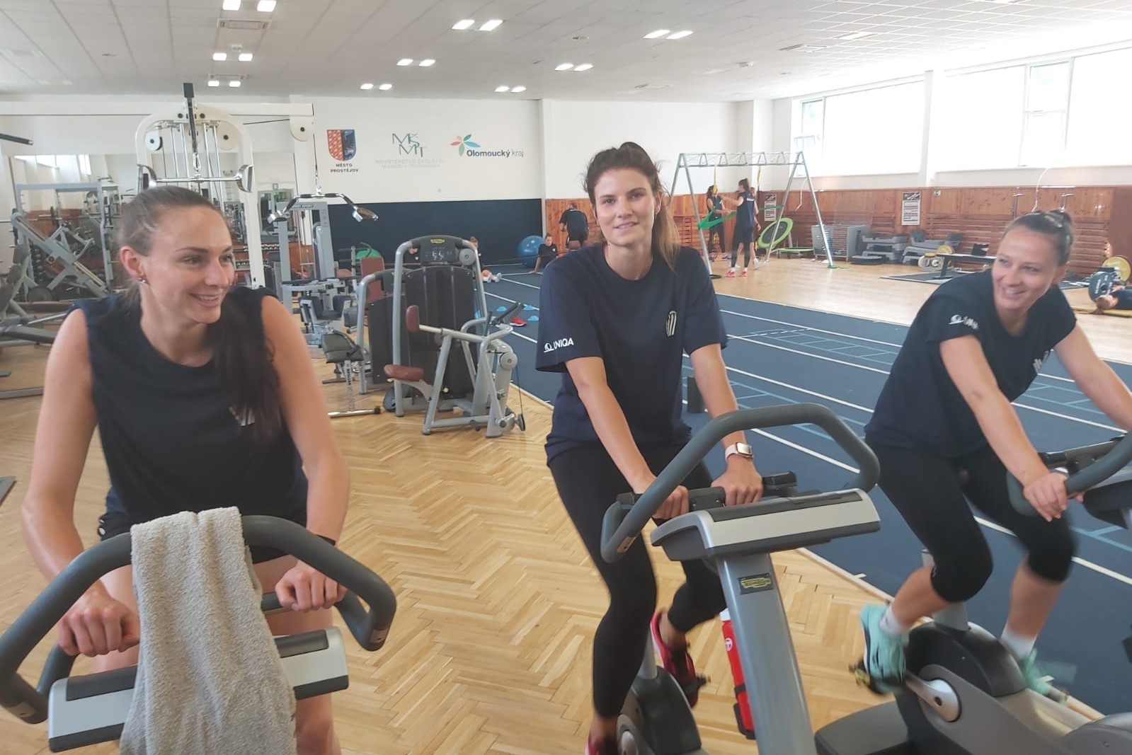 Prostějov je přivítal do ubrečeného počasí, ale skvělé podmínky, jak v hale, tak i v hotelovém areálu, jim na náladě neubraly. „Už jsem se moc na holky těšila a fakt mě už „svrběly“ ruce. Byla to dlouhá doba, i když my jsme v Olympu začaly před necelým měsícem. V té „nejtvrdší“ karanténě se toho moc dělat nedalo, nějaké posilování, protahování a tak,“ říká blokařka Barbora Purchartová.