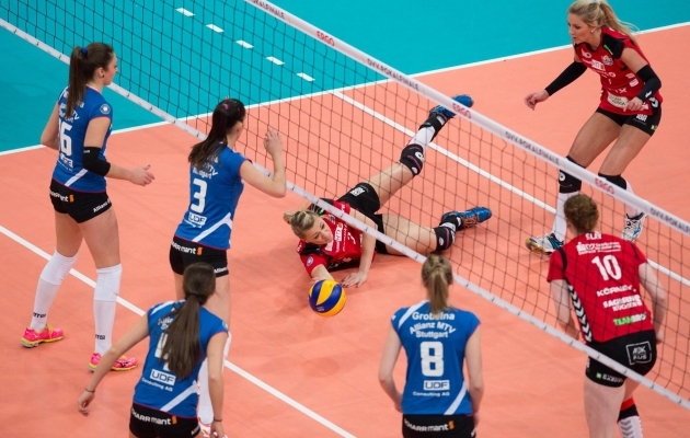 První set získaly svěřenkyně kouče Waibla poměrem 25:22, druhá sada naopak patřila Stuttgartu - 20:25. Vývoj zápasu se přeléval z jedné strany na druhou, třetí sada patřila opět Drážďanům (25:18) a po poměrně hladce vyhraném setu to vypadalo, že si v poklidu dokráčí k pohárovému triumfu. Opak byl však pravdou, celek ze Stuttgartu ožil, vyhrál čtvrtou sadu a mohlo se začít od znova. „Stuttgart do toho dal skutečně všechno a začal předvádět skvělou hru. Rázem to bylo opět 50 na 50,“ sdělilo po utkání libero týmu Drážďan, Holanďanka Myrthe Schootová.