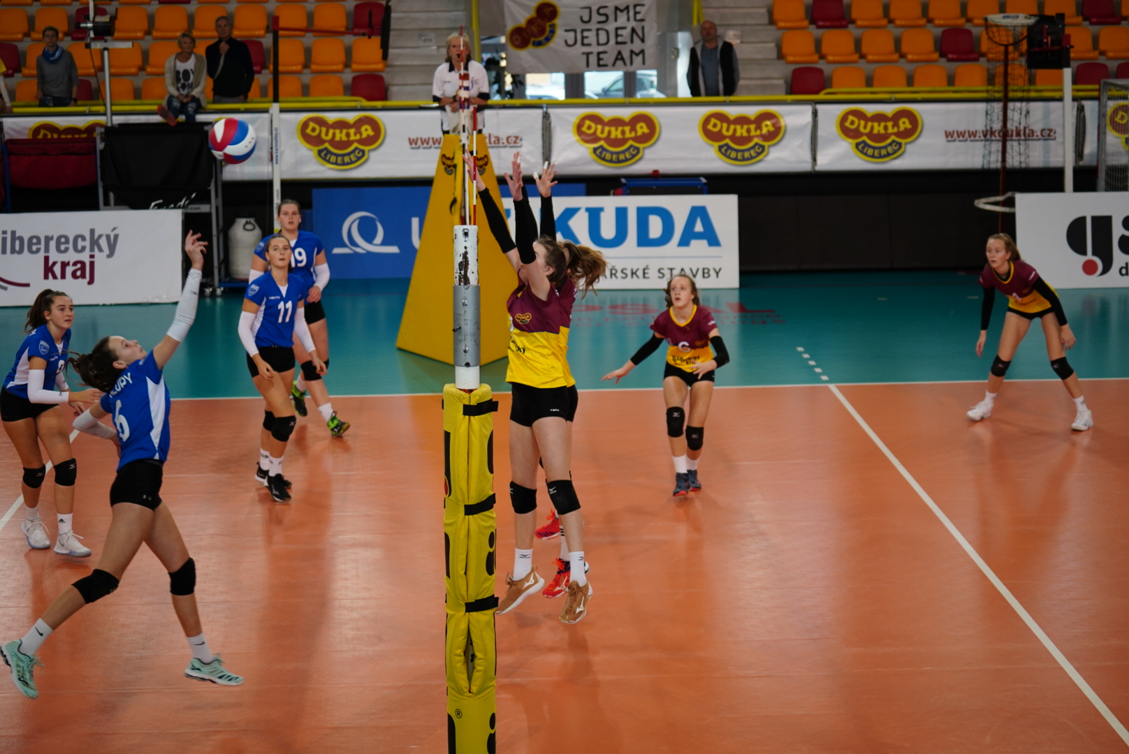 Hned úvodní zápas, který jsem sledoval v sobotu dopoledne od 9 hodin na hale Dukly Liberec mezi Kralupy a 15. ZŠ Plzeň přinesl zajímavý průběh, ve kterém v prvním setu jasně dominovaly favorizované Kralupy. Naopak druhý set přinesl vyrovnaný průběh a vítěznou koncovku pro Plzeň. Ve třetím setu převážila vyšší volejbalová kvalita hráček z Kralup, variabilní hra díky kvalitní nahrávce a smečařské dovednosti jak krajních hráček, tak i blokařek. Přesto pochvala i plzeňským hráčkám, které po prvním setu zmobilizovaly spolu s trenérem svou herní kvalitu!