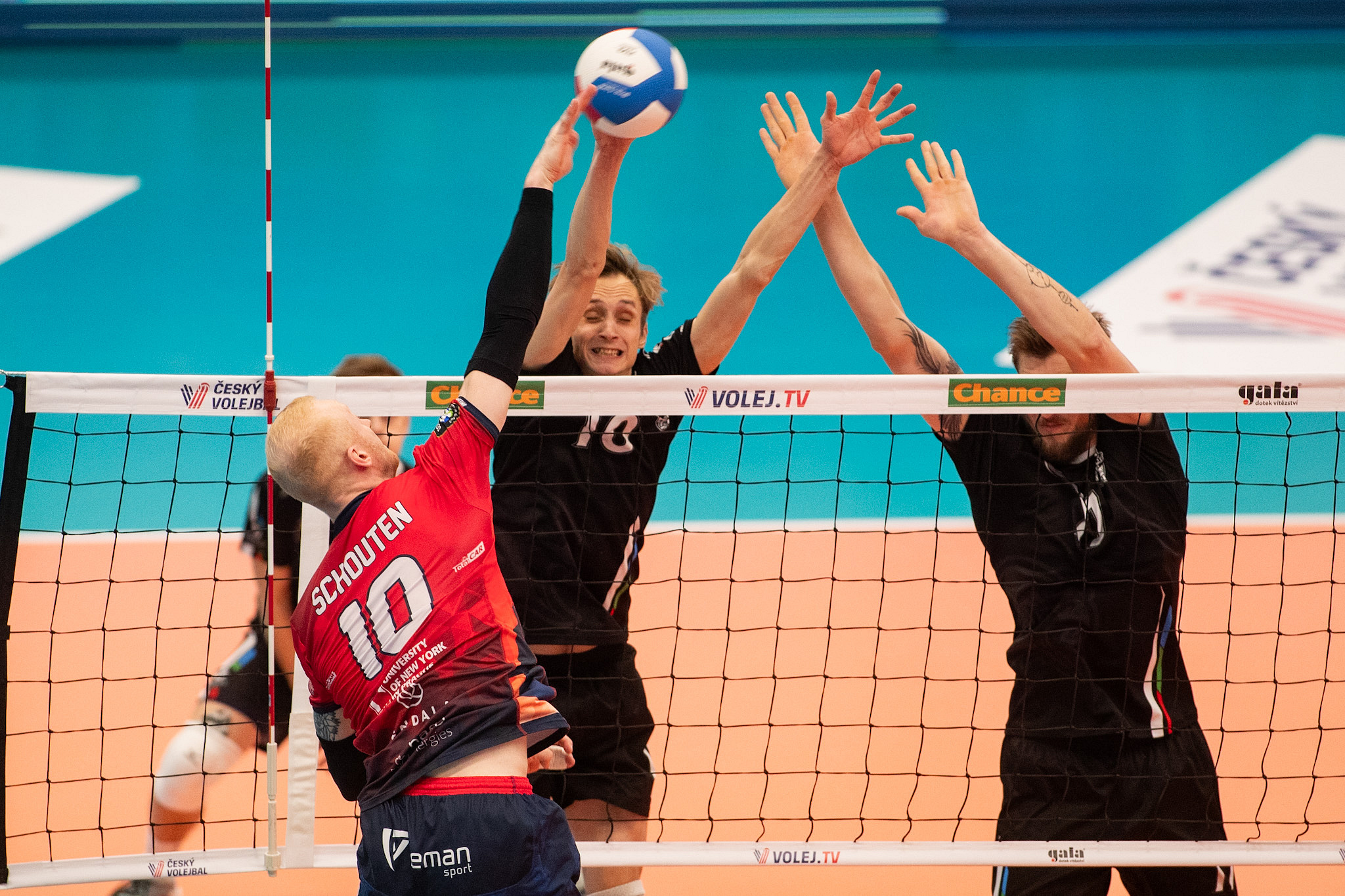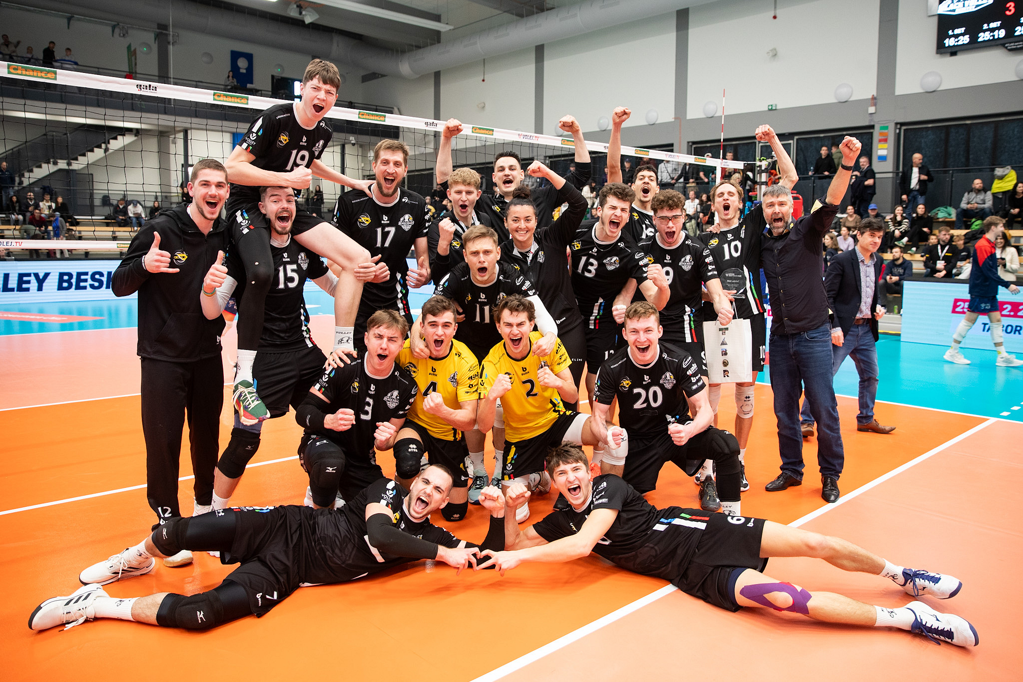 Black Volley: Danylov, Mišek, Koloušek, Guimaraes, Mečiar, Benda, libero Míček. Střídali: Hilšer, Klimeš