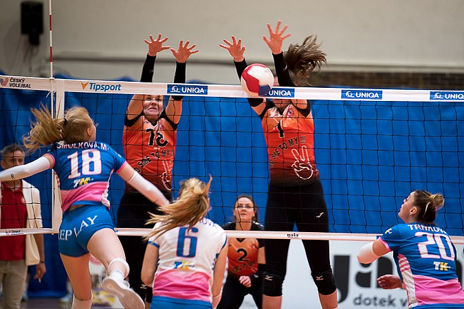 Hosté: Meidlová, Löff, Bajusz, Nikolova, Trnková, Silva, libero Stavinohová. Střídaly: Nováková, Smolková M., Smolková J.